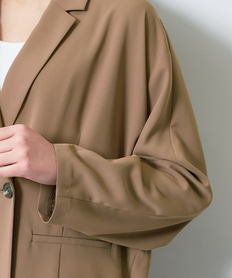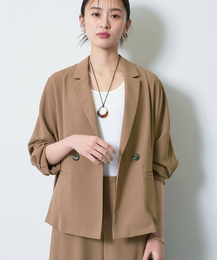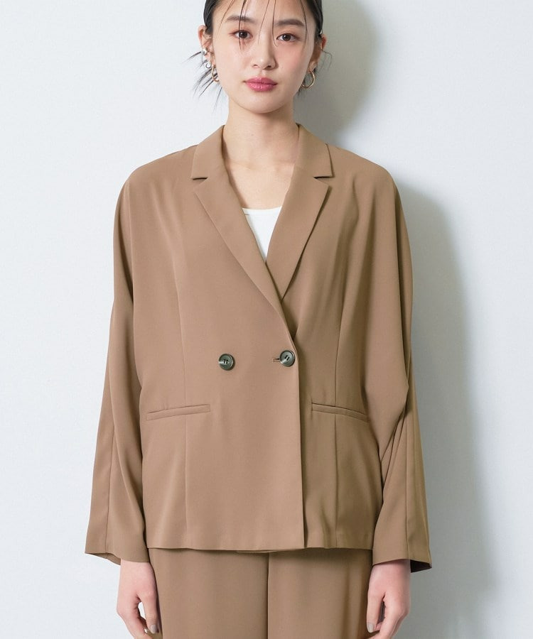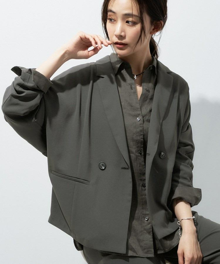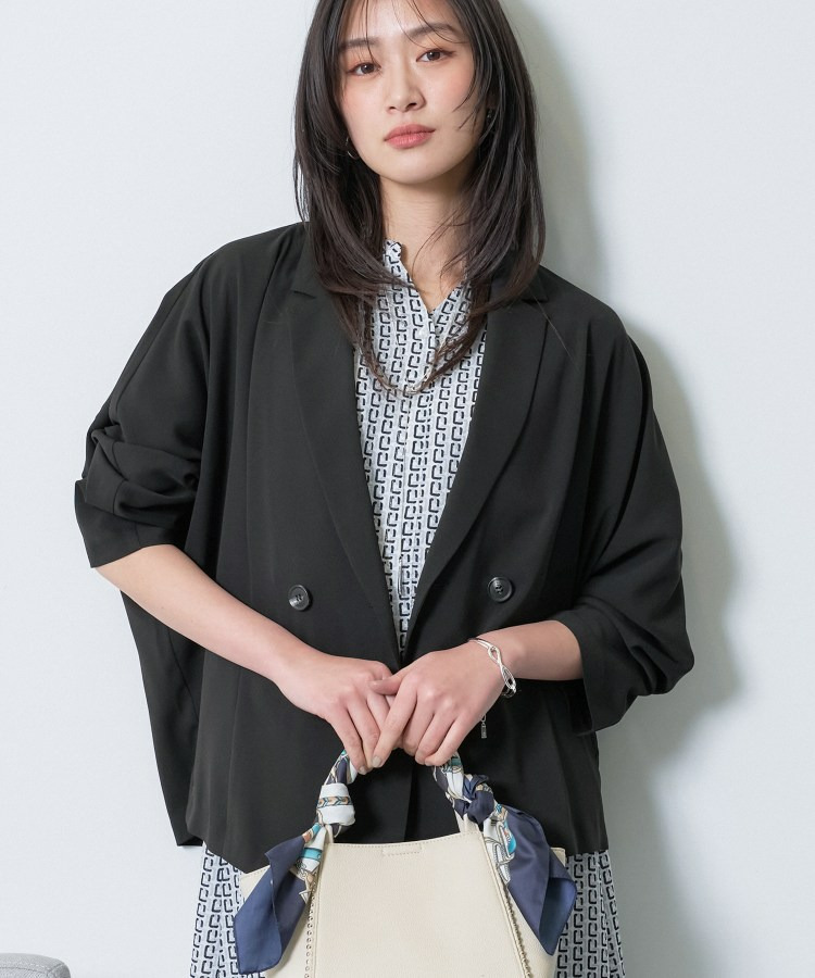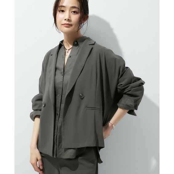 マニッシュなダブルブレストのデザインと、リラックス感のあるドルマンスリーブを融合させたトレンドジャケットです。
