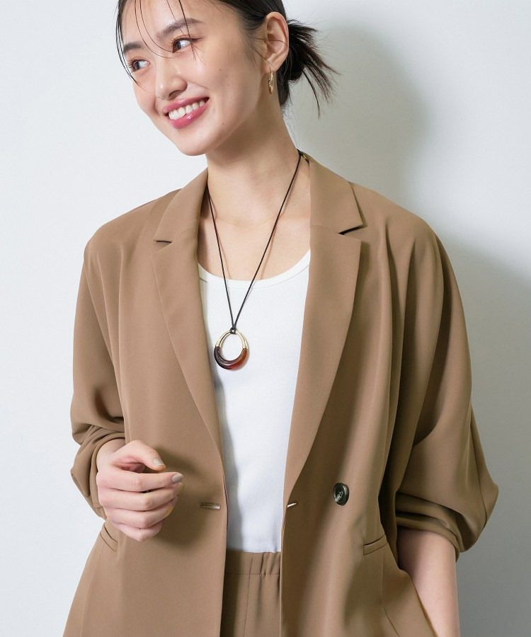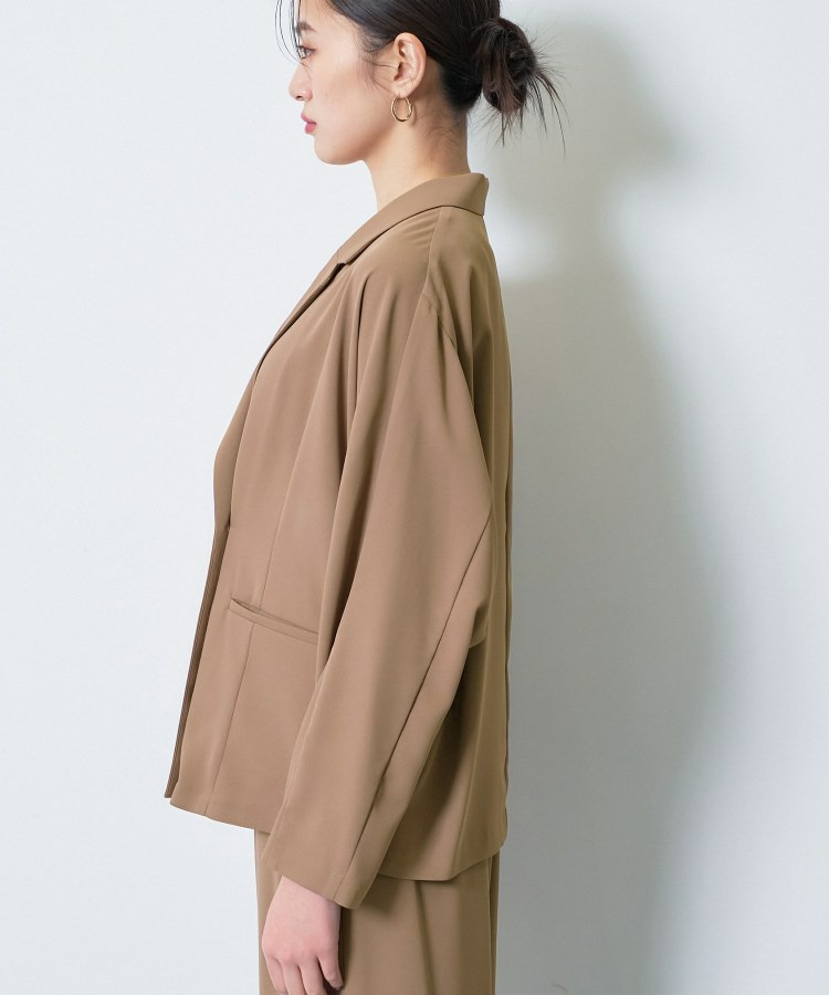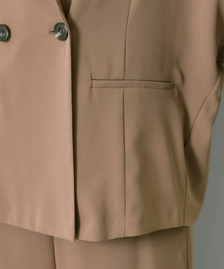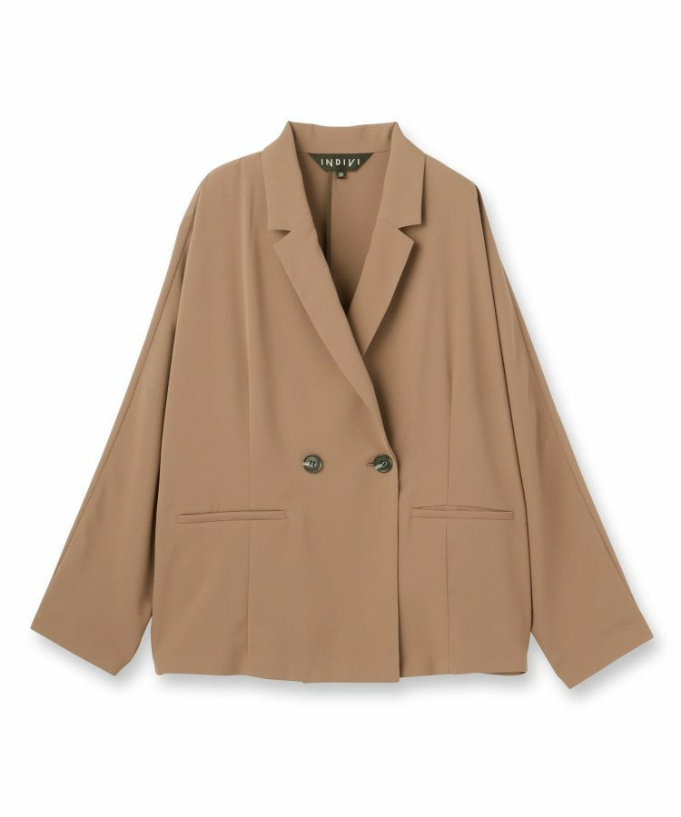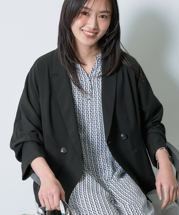 マニッシュなダブルブレストのデザインと、リラックス感のあるドルマンスリーブを融合させたトレンドジャケットです。