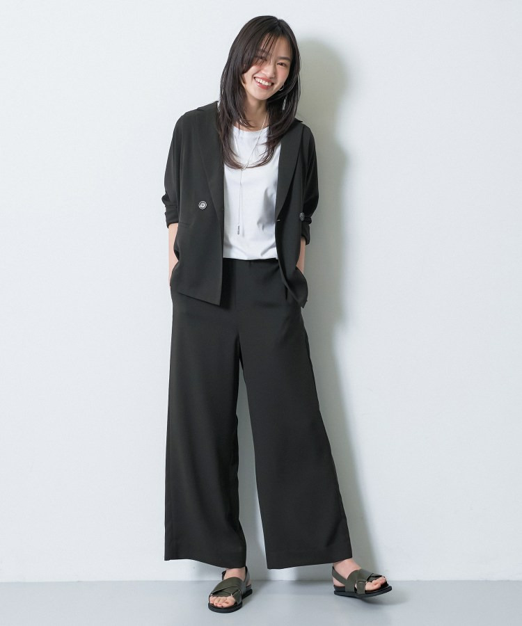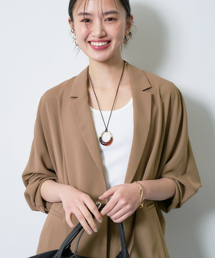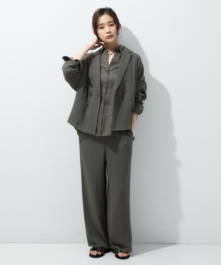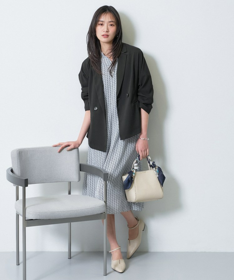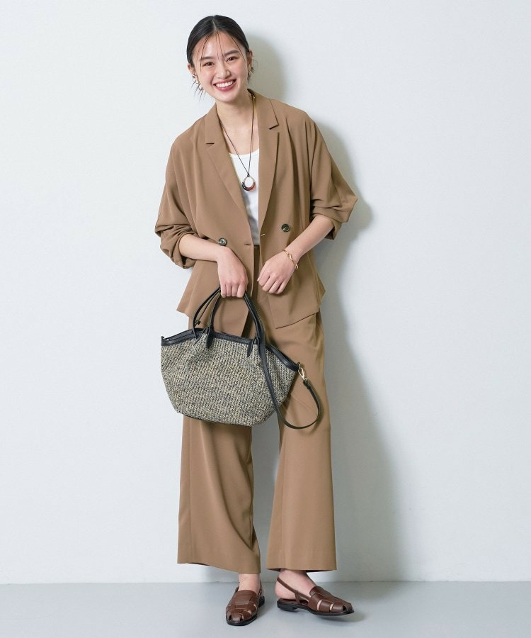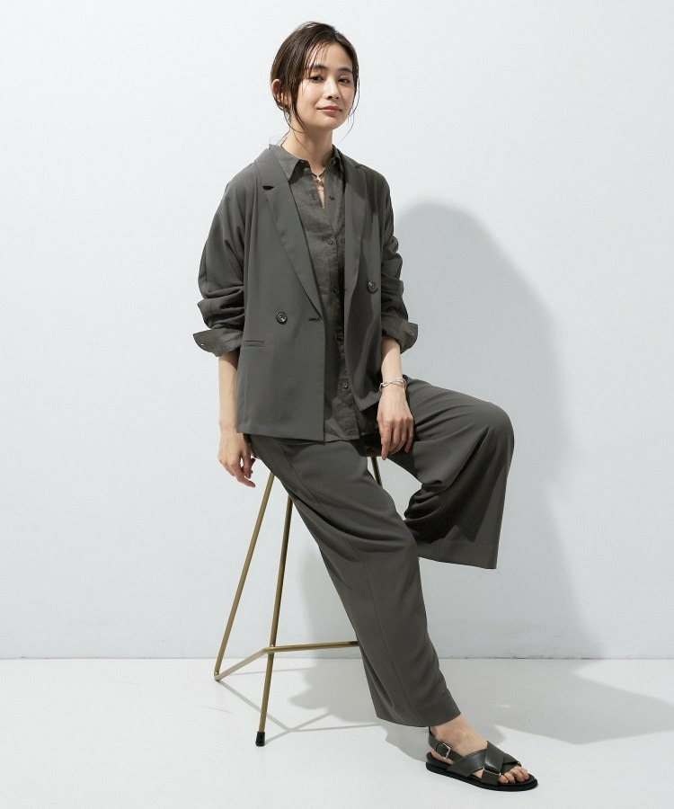 同素材のパンツと合わせたセットアップは、かっちりしすぎず、現代的なリラックス感のあるオフィスカジュアルとして活躍します。