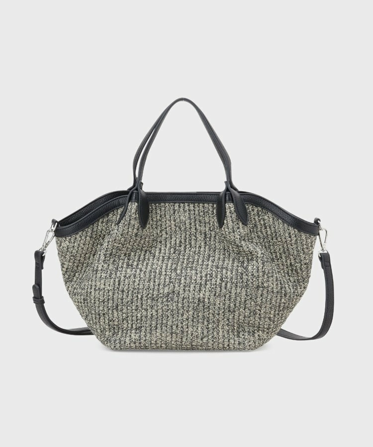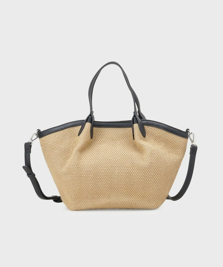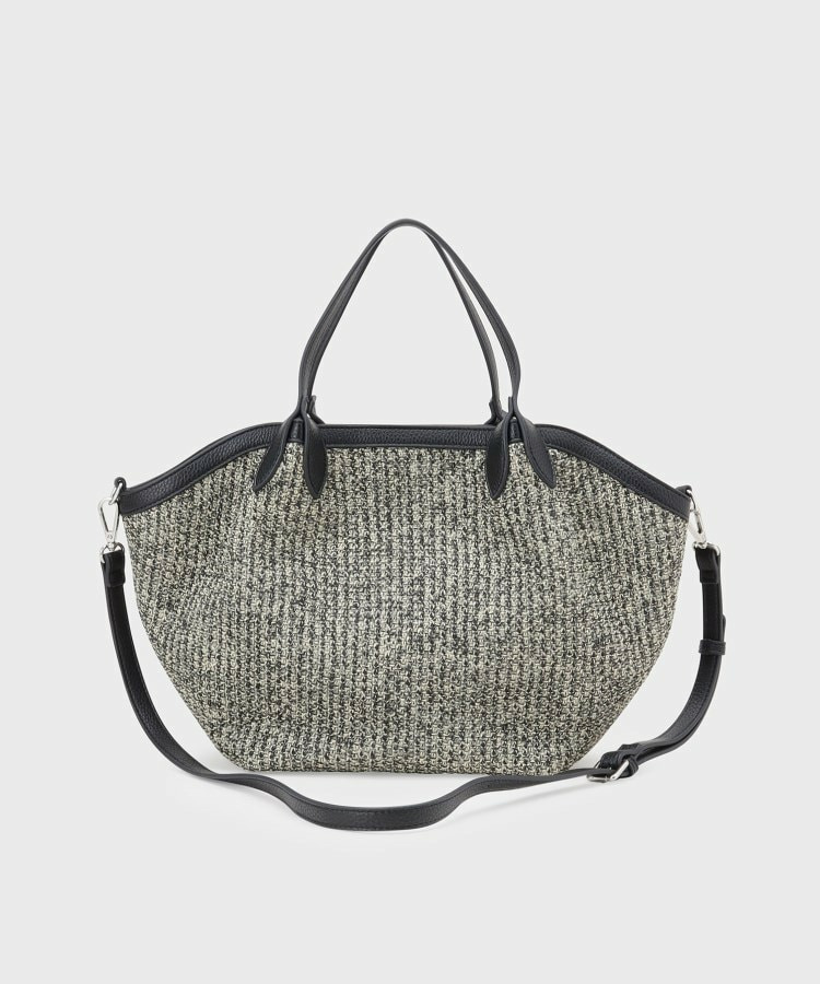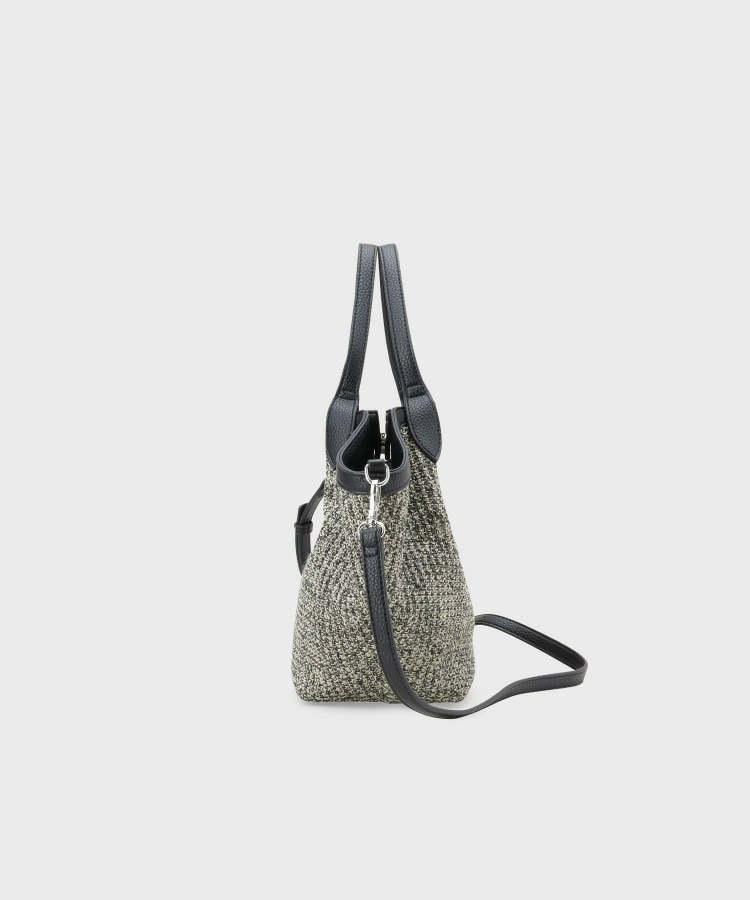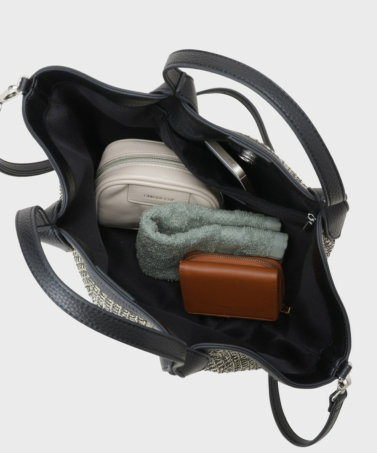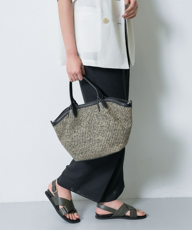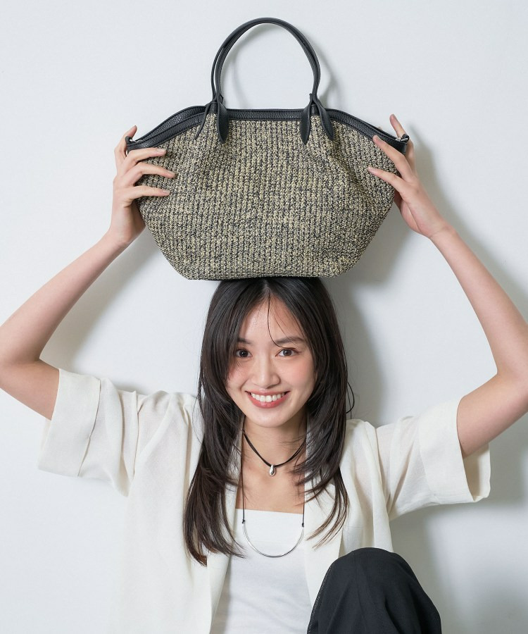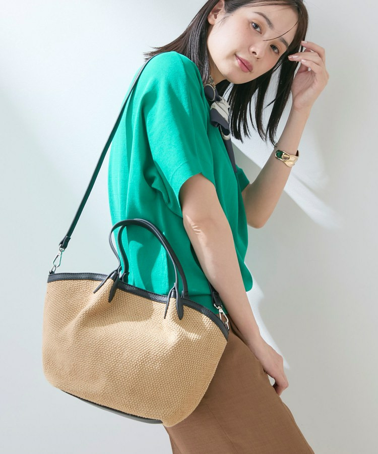夏らしいペーパー素材を丁寧に編み込んだような、かごバッグ風のミドルサイズバッグ。