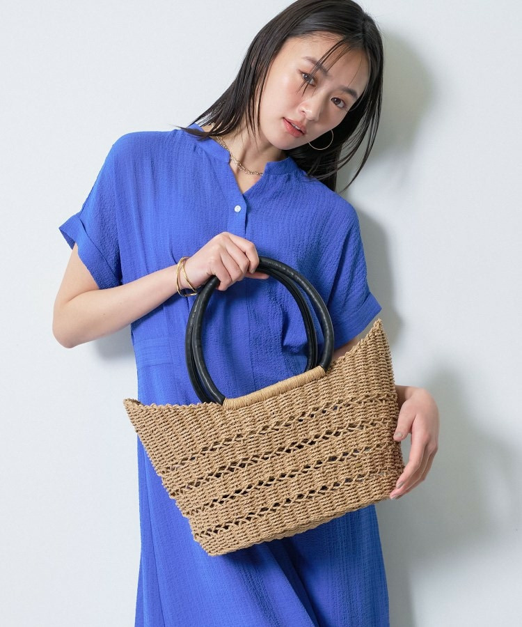 ペーパーヤーンをざっくりと編み上げた、表情豊かなカゴバッグ。