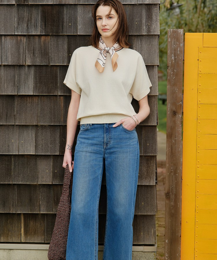 トップスはコンパクトすぎないシルエットなので、ボリュームのあるボトムとも好バランスに決まります。