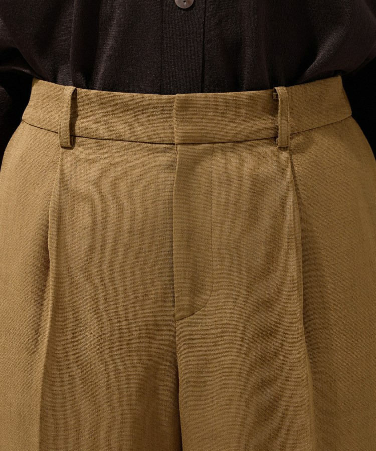 通気性が高くドライなタッチのメッシュ素材を使用した、清涼感のあるワイドパンツ。