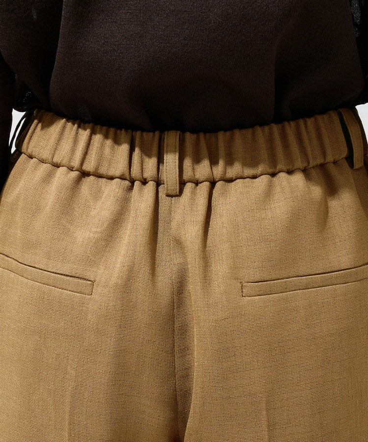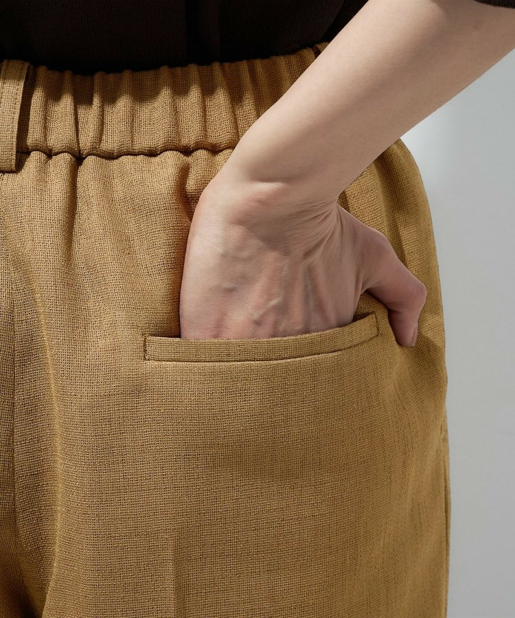 ウエスト周りはすっきりと見せつつ、後ろ側にゴムを入れることで快適な穿き心地を実現しました。