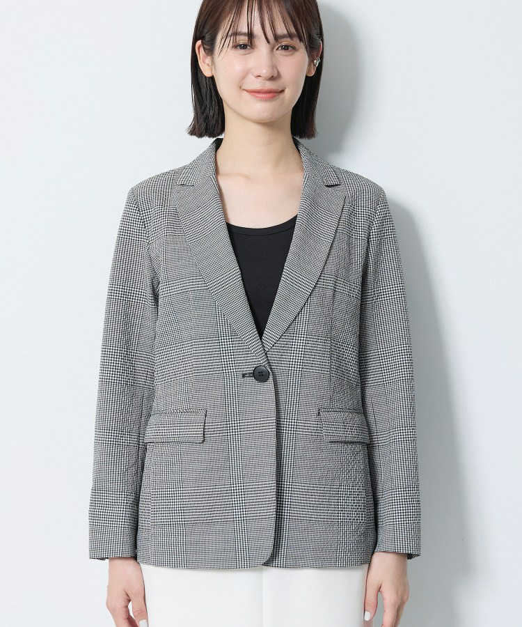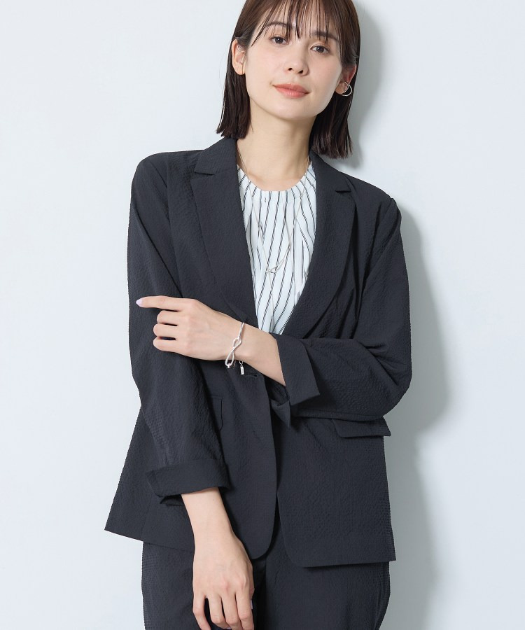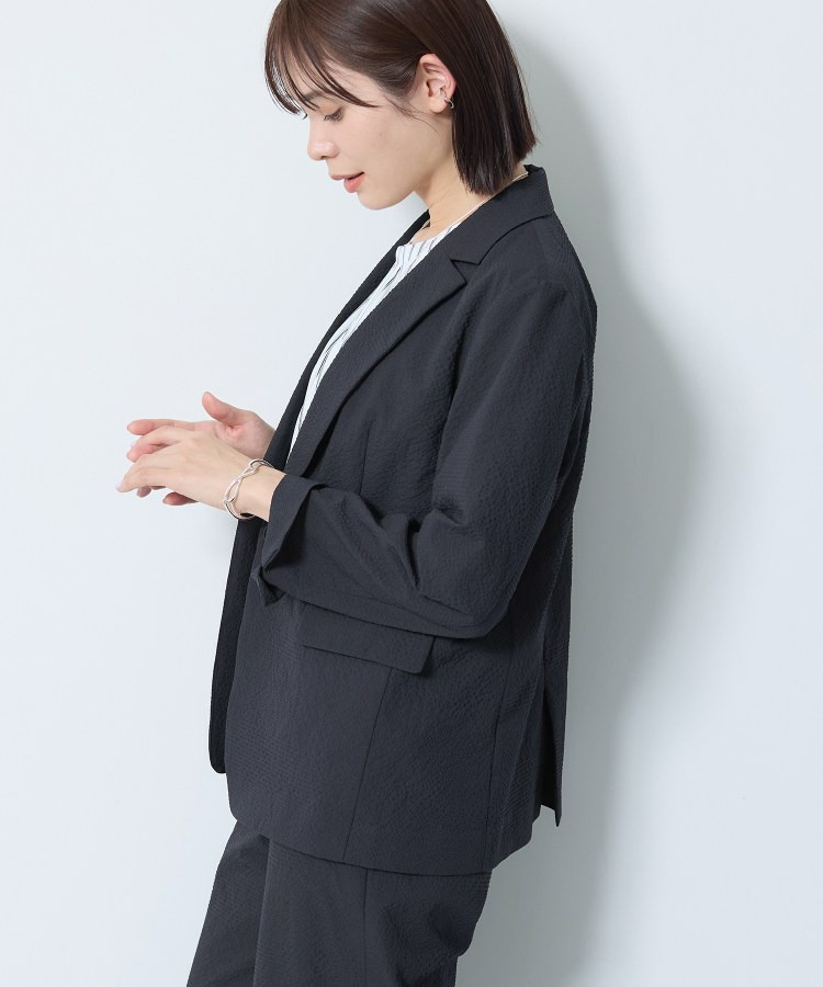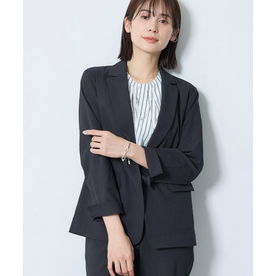 【洗える/UVケア/SETUP可能】サッカー素材テーラードジャケット