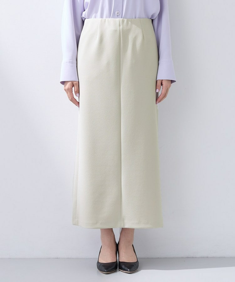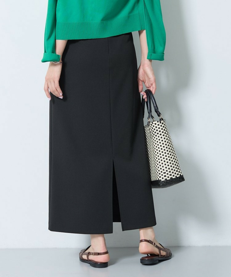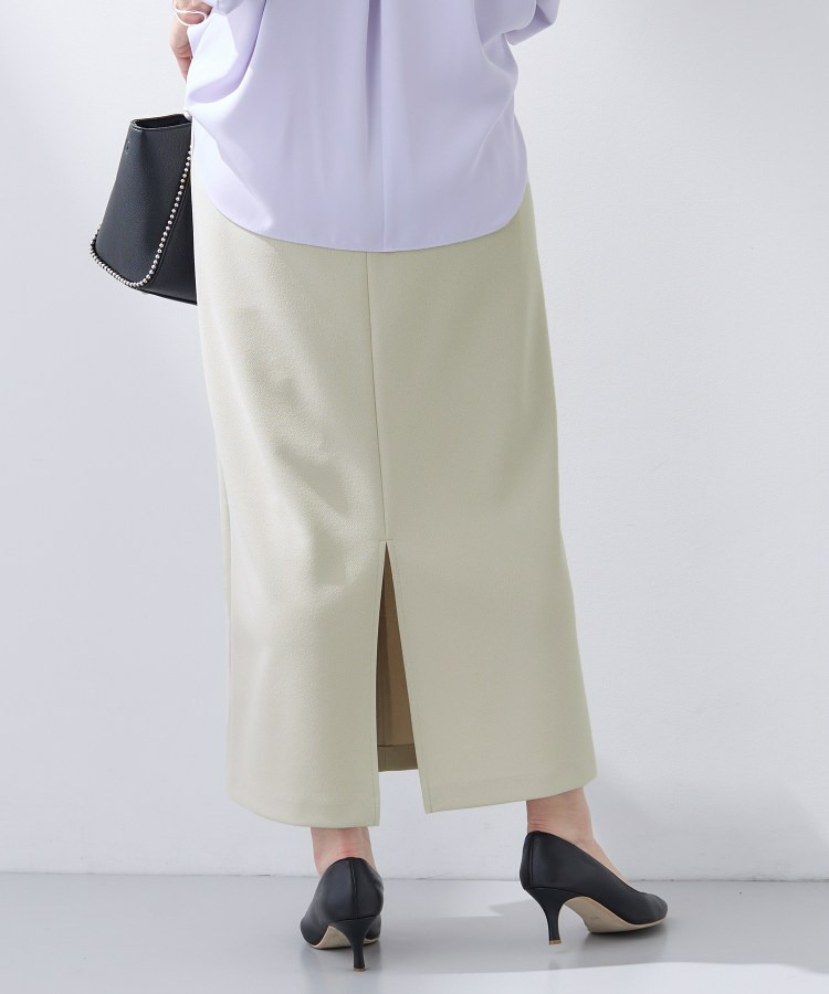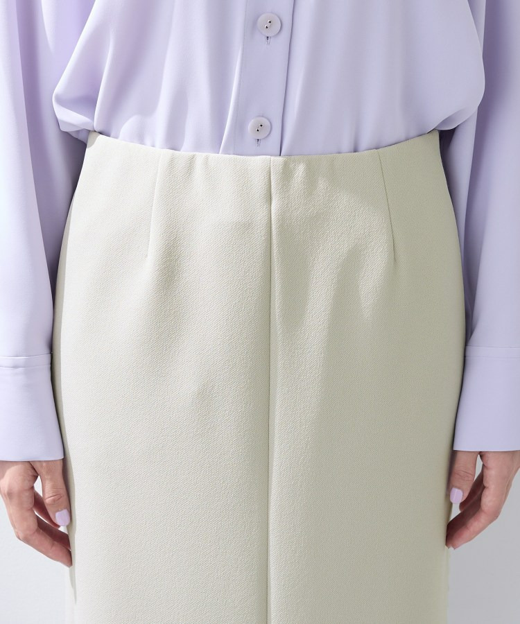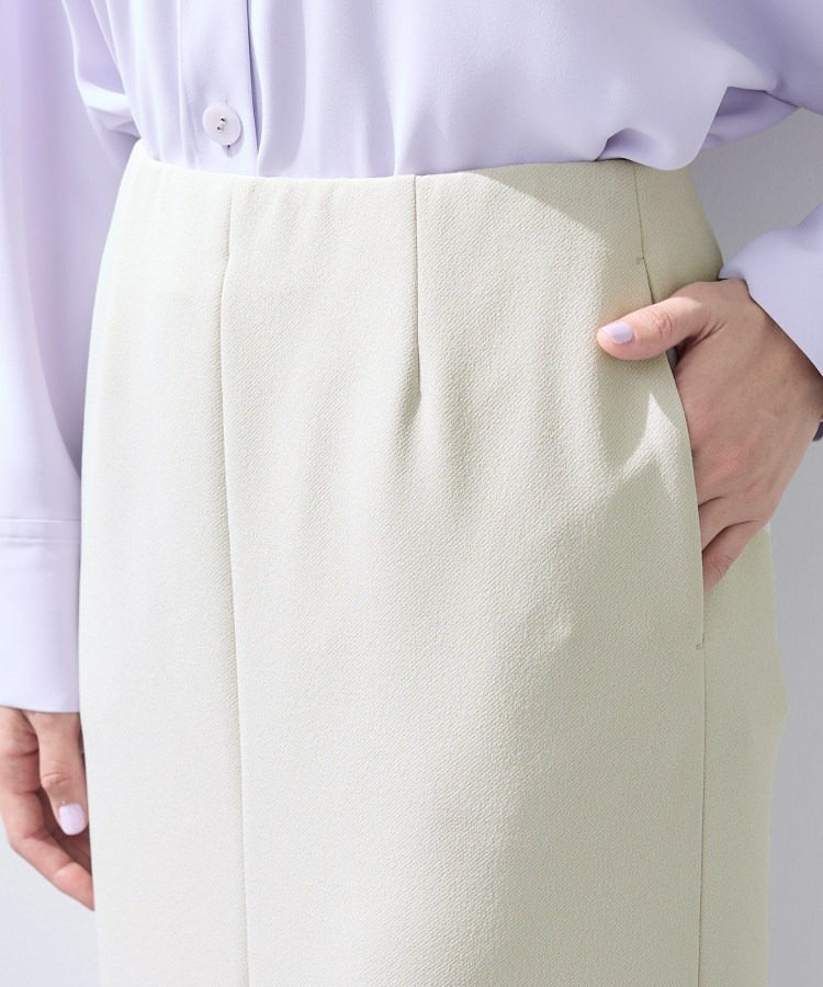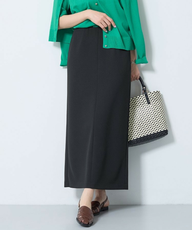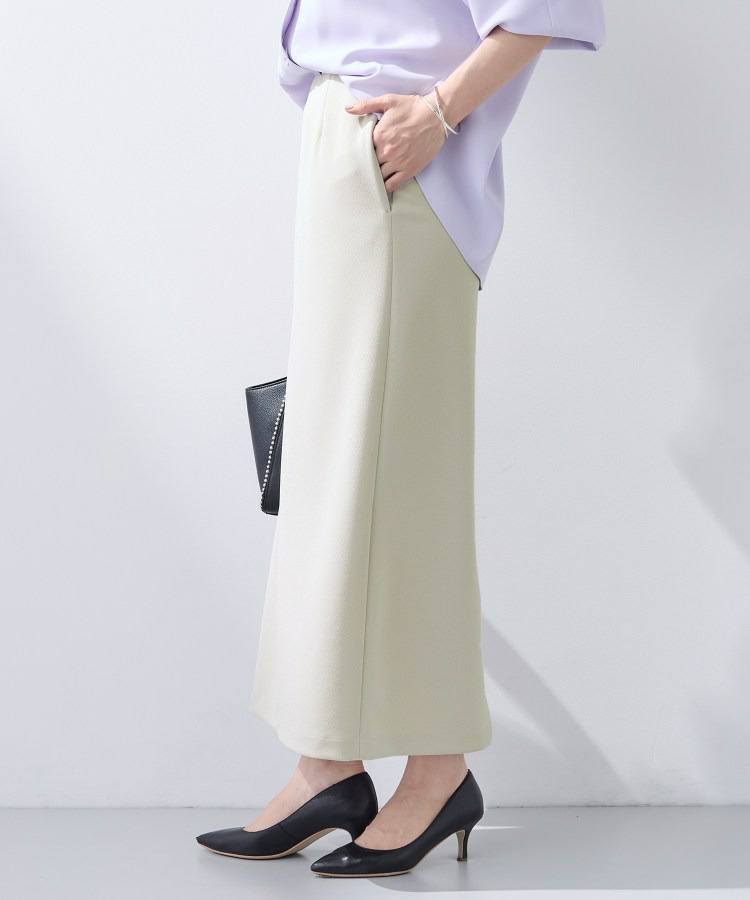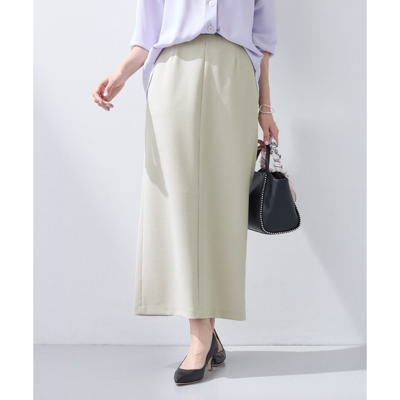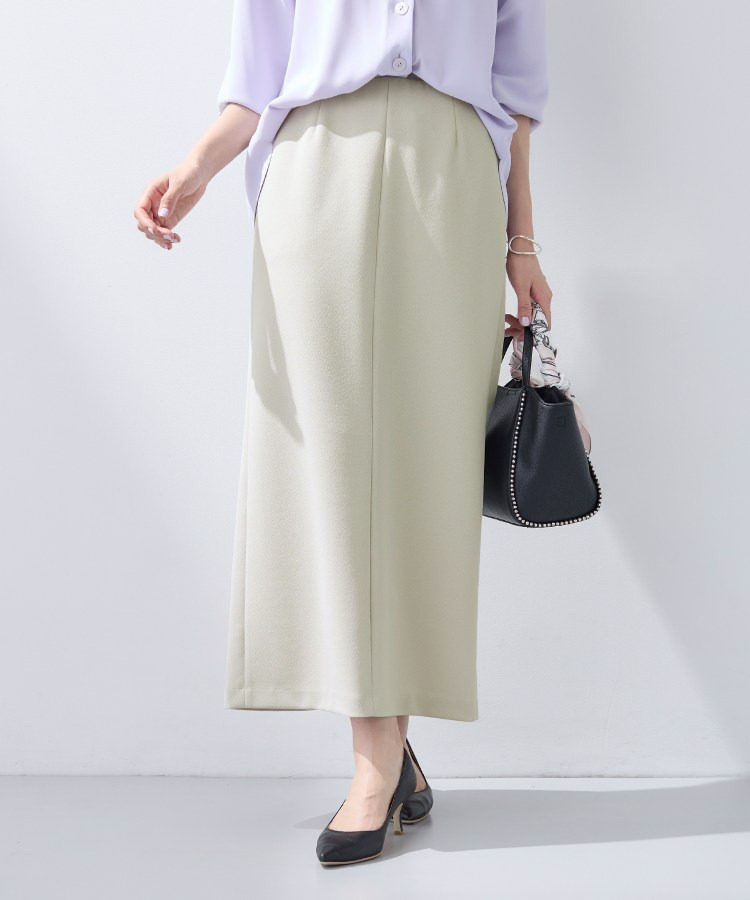着心地がイージーでシンプルなIラインスカートは合わせを問わずご着用いただけます。