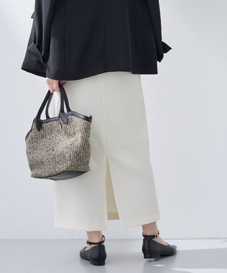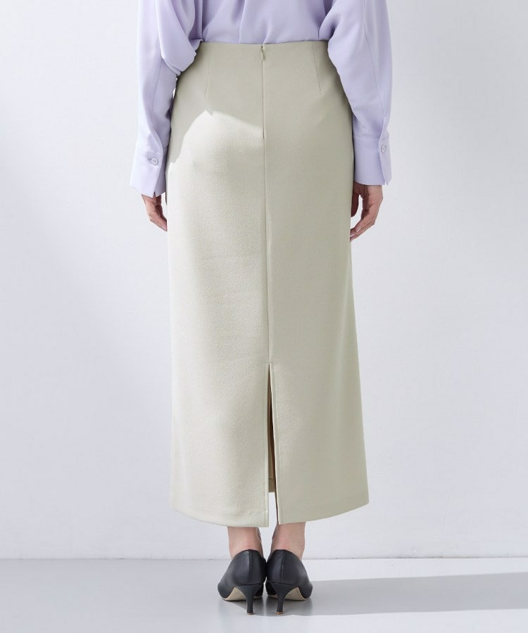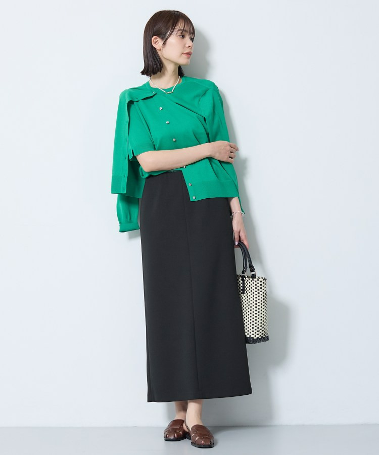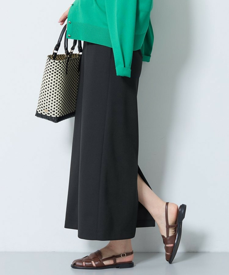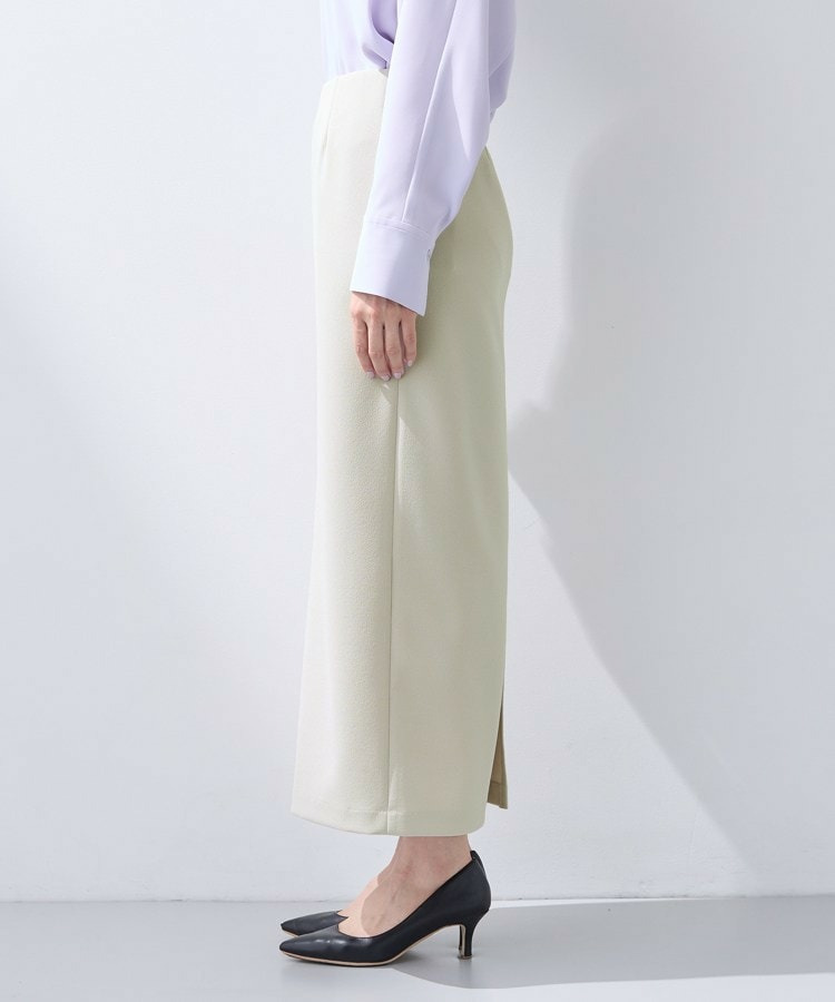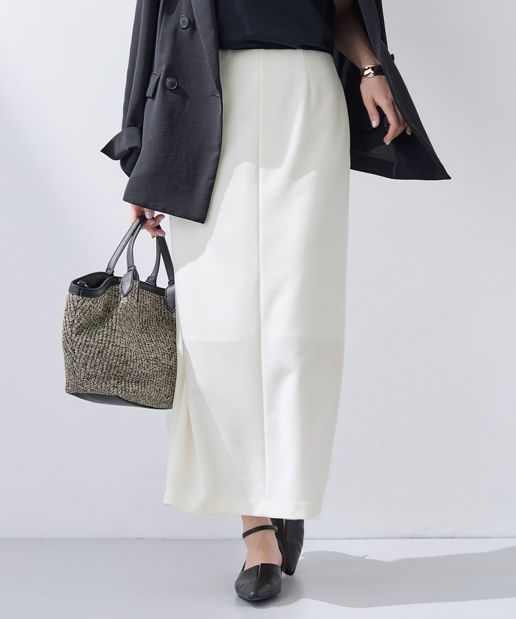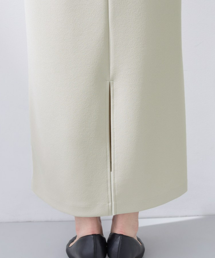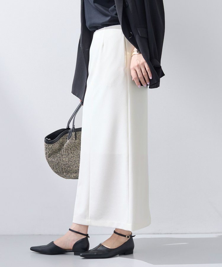着心地がイージーでシンプルなIラインスカートは合わせを問わずご着用いただけます。