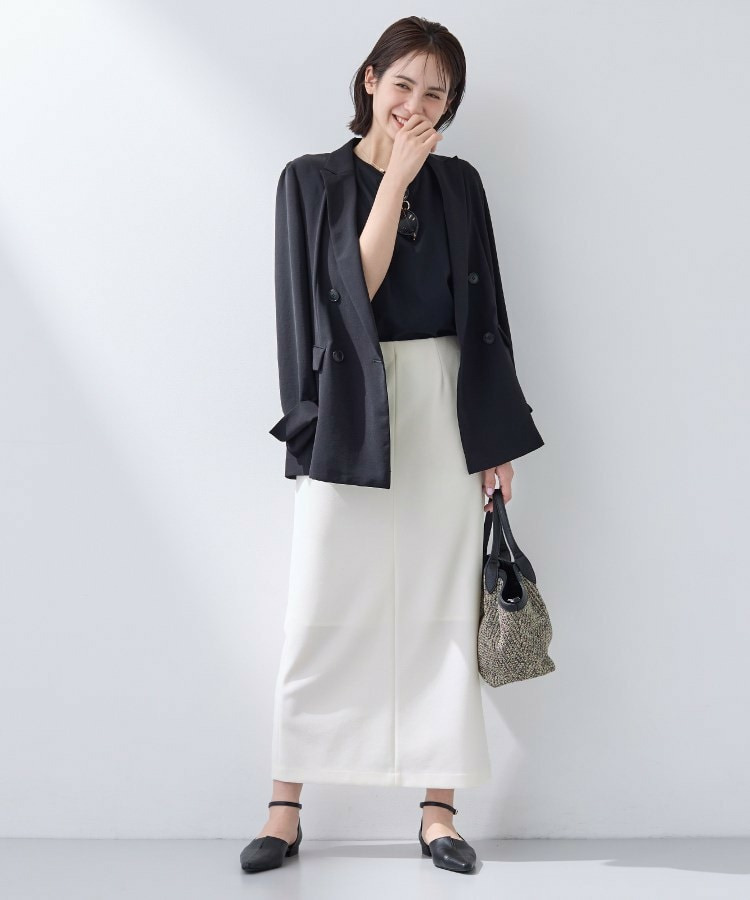 身体のラインを拾いにくいナロータイトシルエットで、すっきりとした印象に仕上げました。