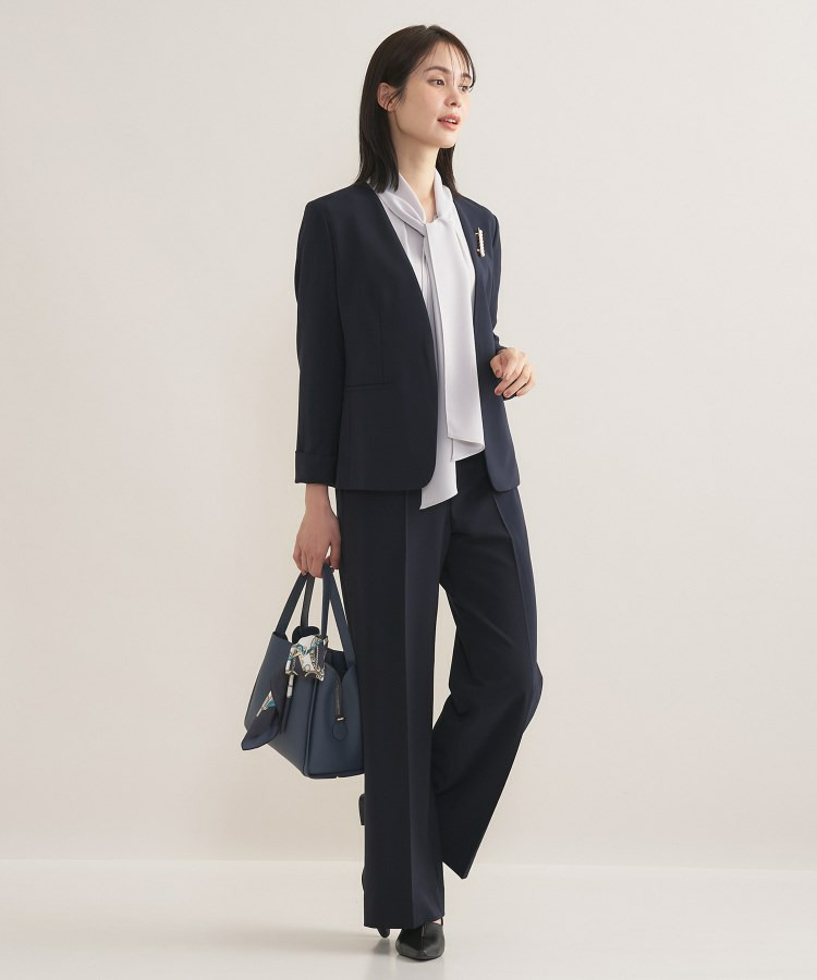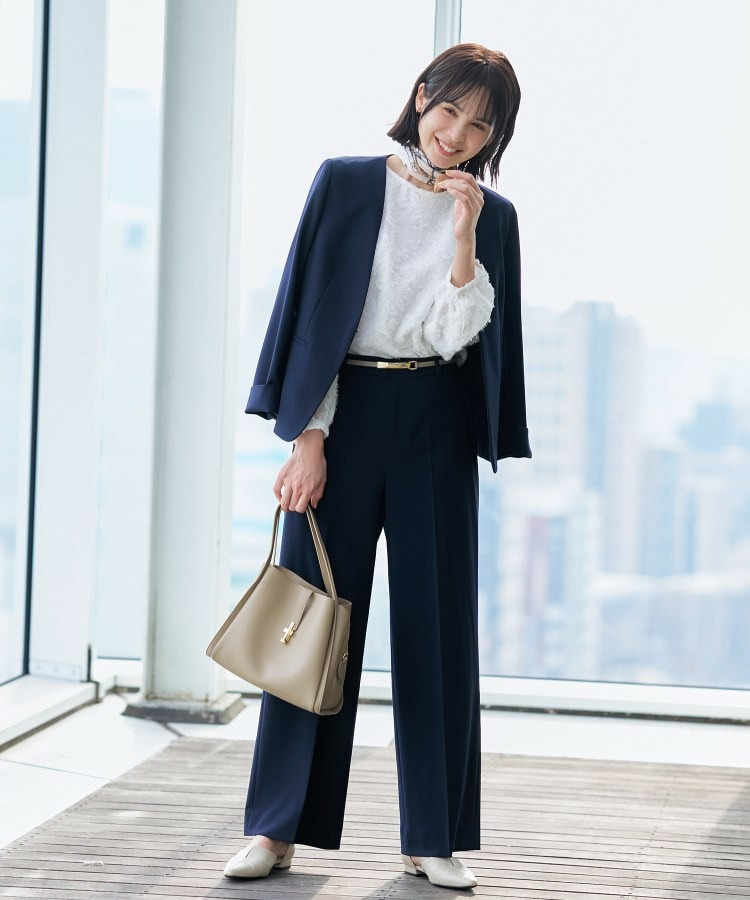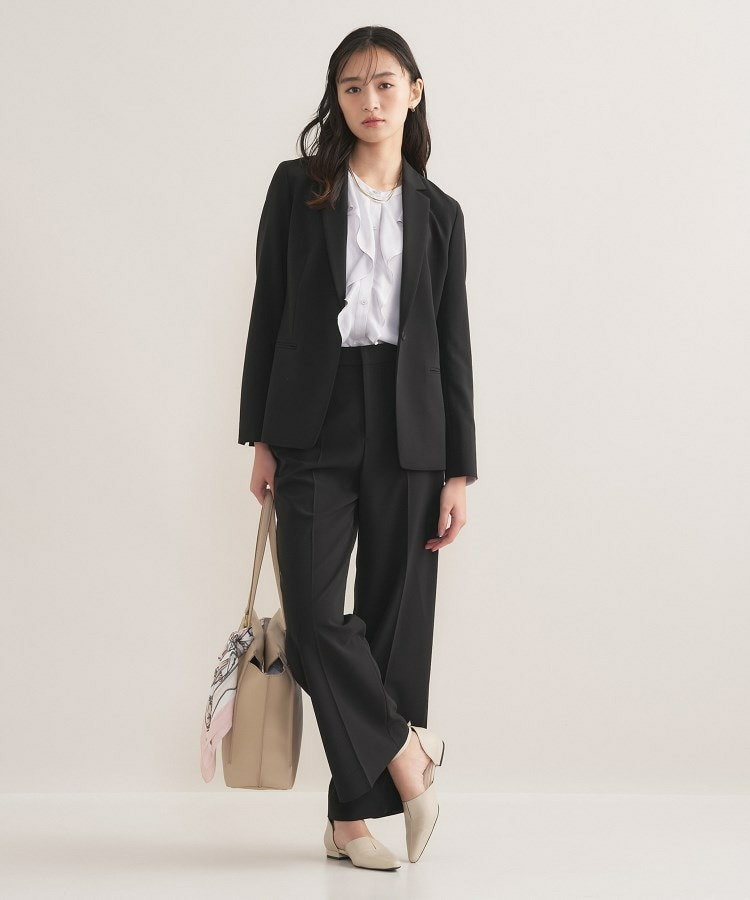 スーツとしてセットアップできちんと感のあるスタイルはもちろん、単品としてブラウスやニットと合わせてもキレイめでシャープな通勤用スタイルとして活躍します。