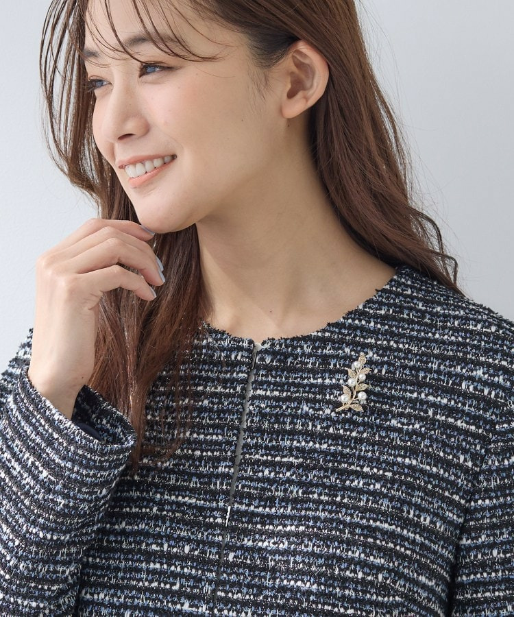トレンドの毛足のあるニットやカラーニットに合わせて、いつものトップスを華やかな印象にしていただけます。