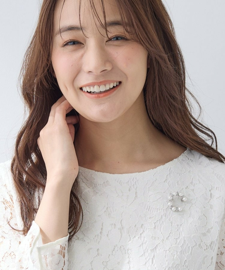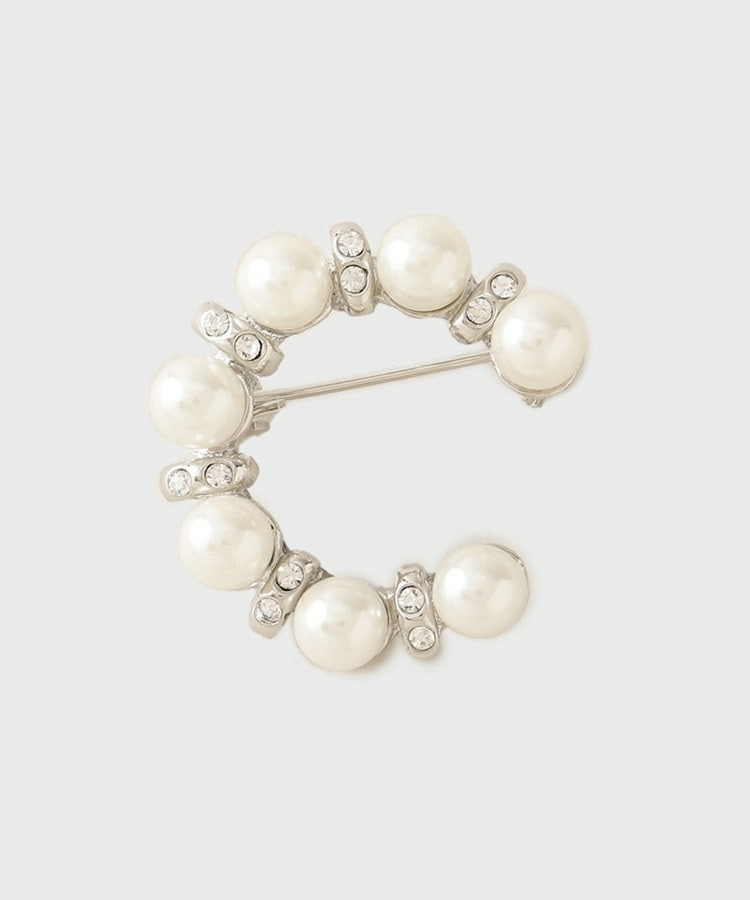 フェイクパールで構成されたC型のモチーフにもストーンをあしらい、より上品さをアップしました。