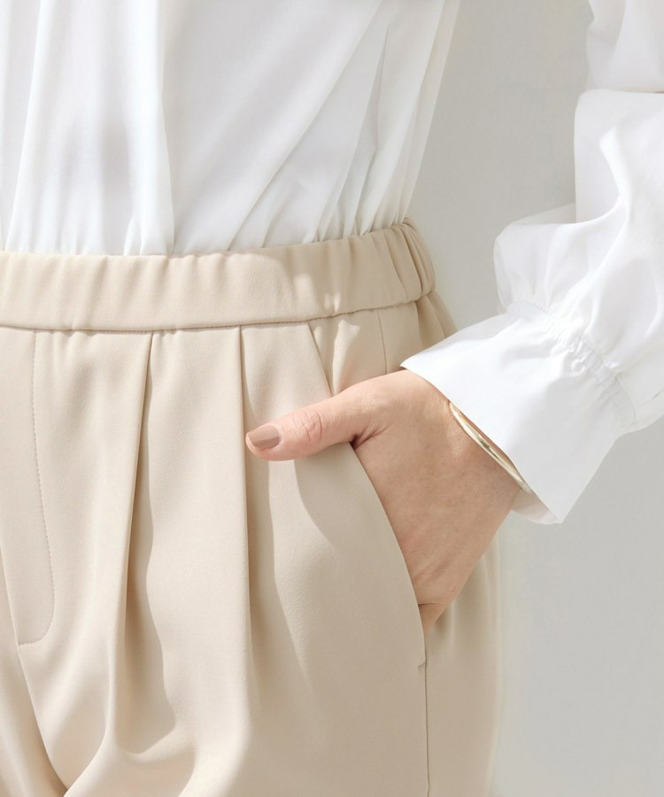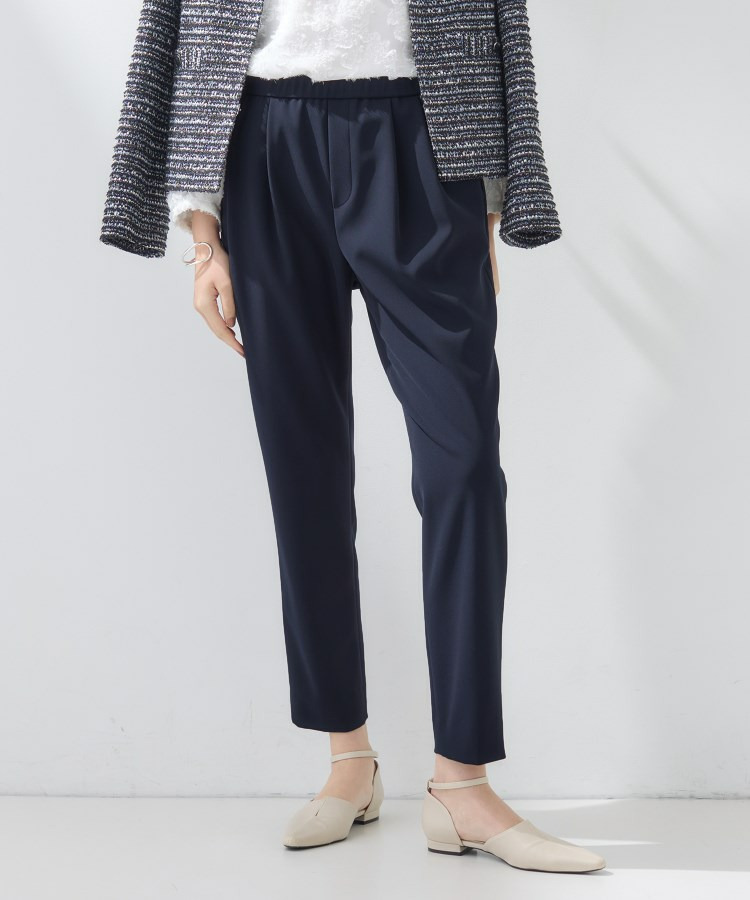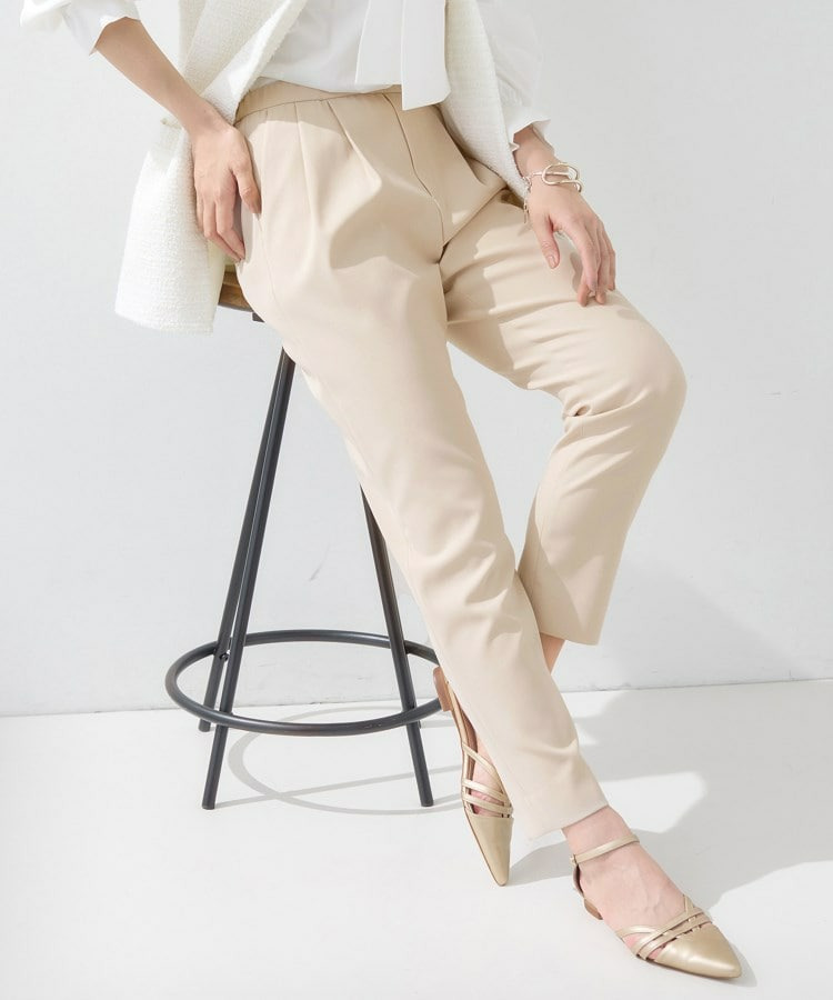 【褒められパンツ/高ストレッチ】タックテーパードパンツ