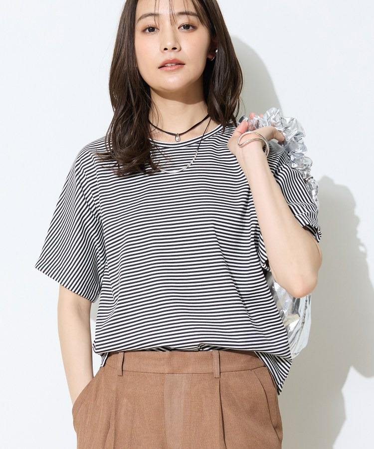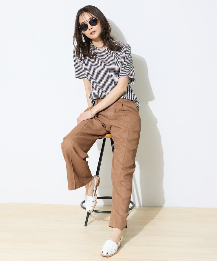 タックインしなくても決まる絶妙な丈感で、一枚でサマになるトップスです。