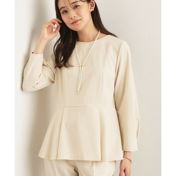 ウエストをやや絞り、タックで裾に向かって広がるペプラムシルエットのブラウスです。