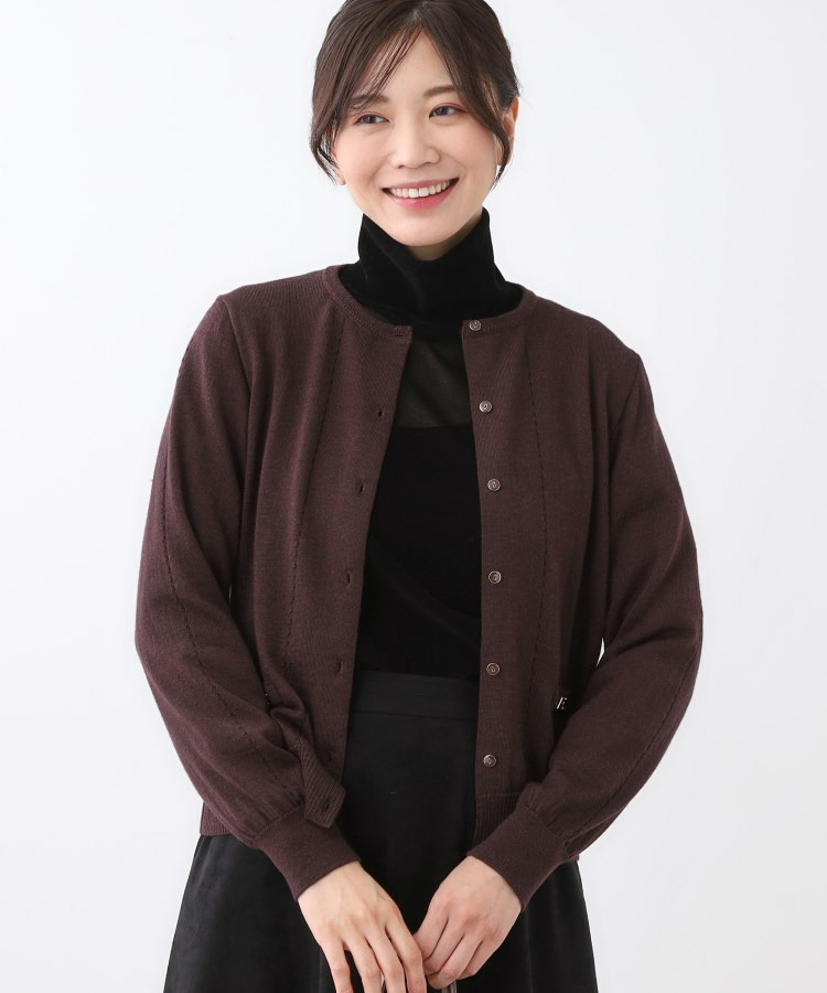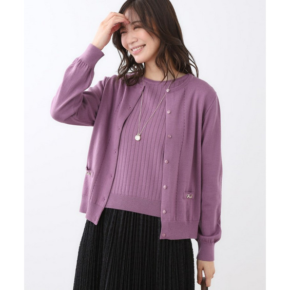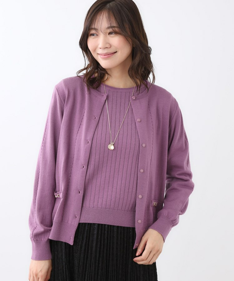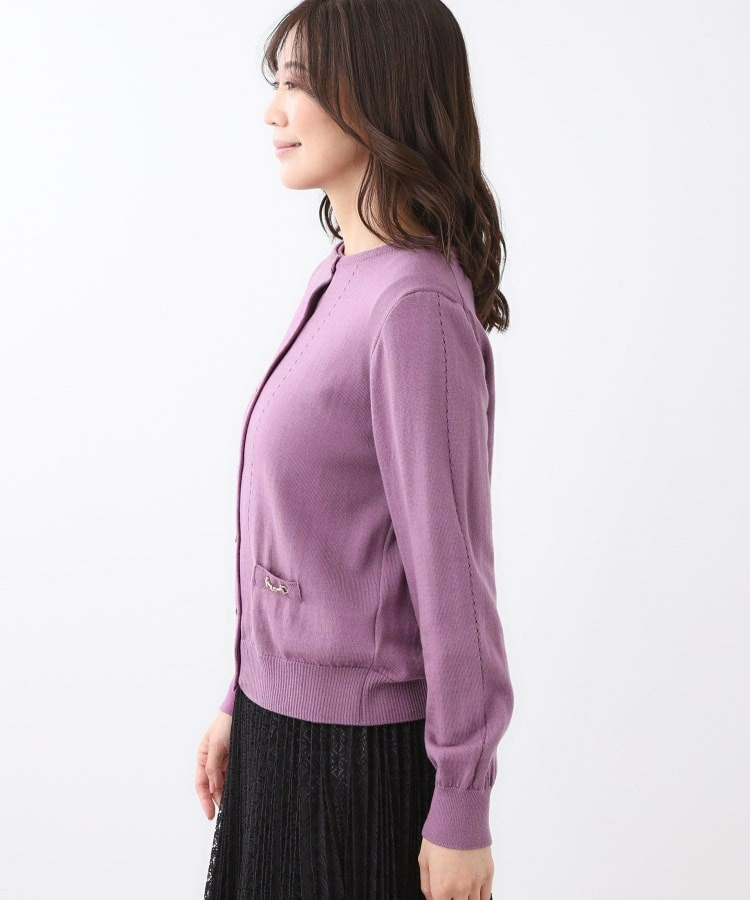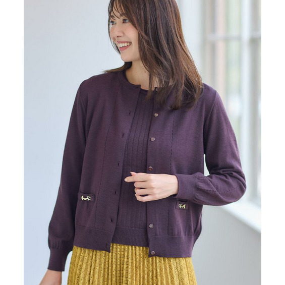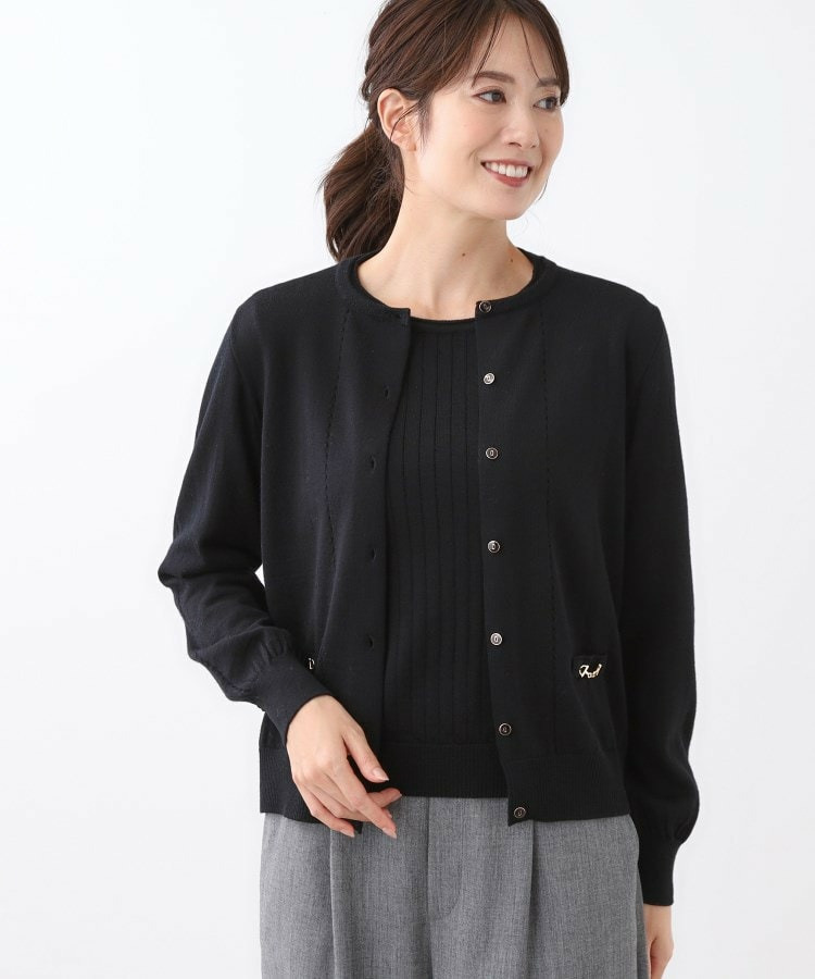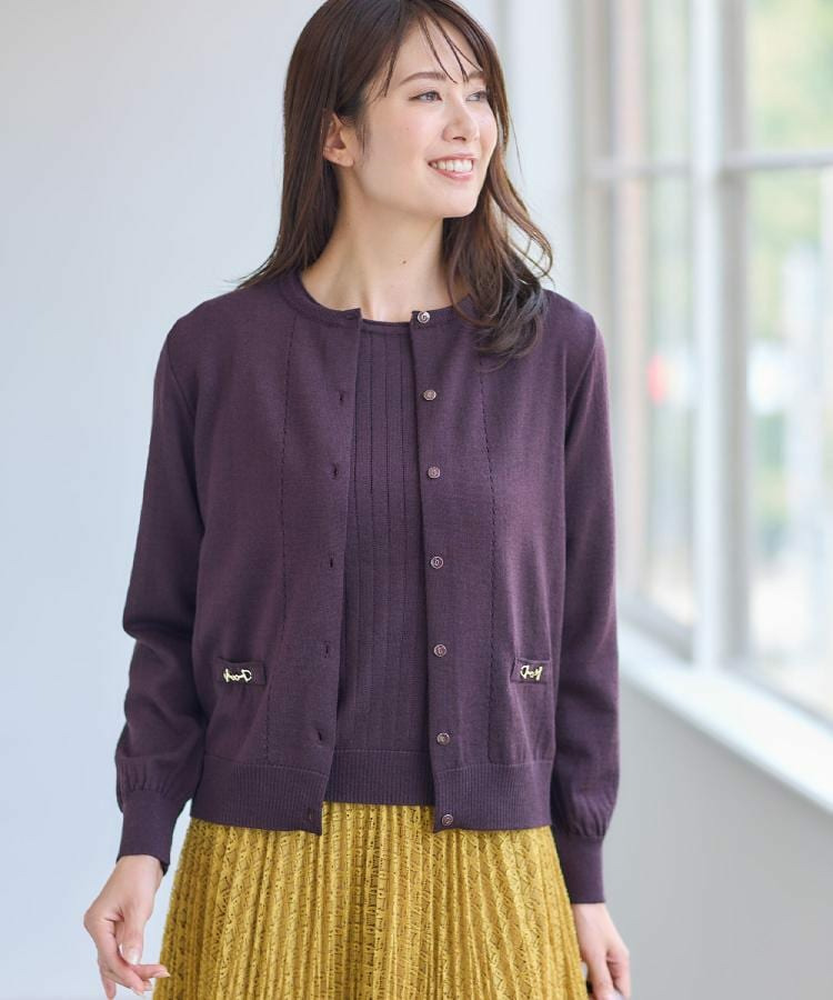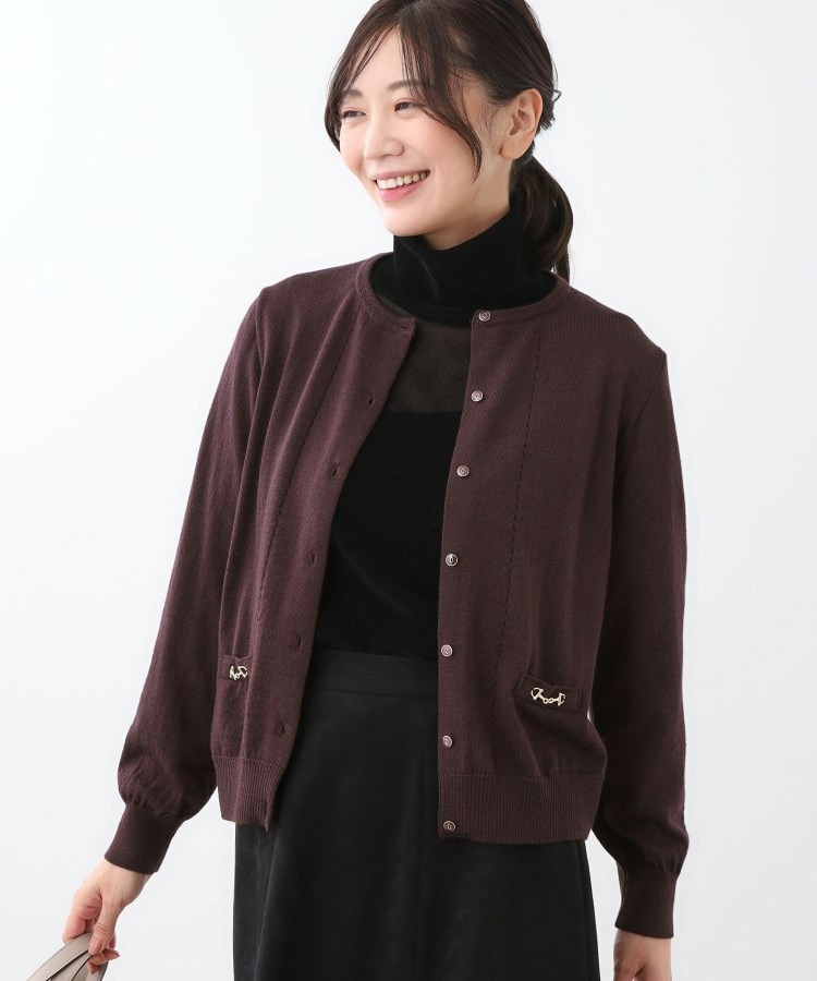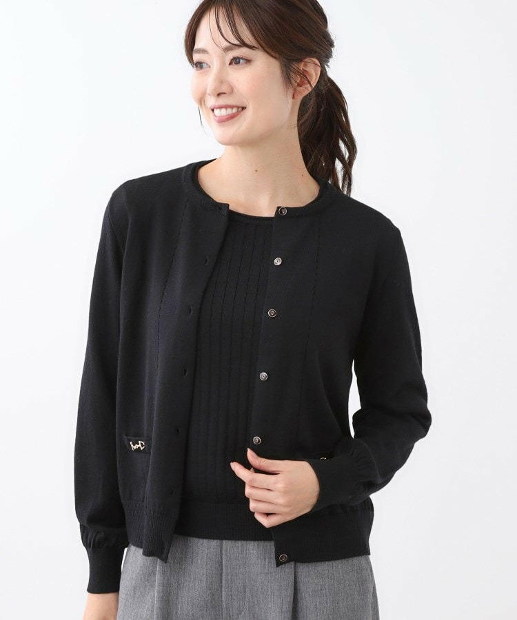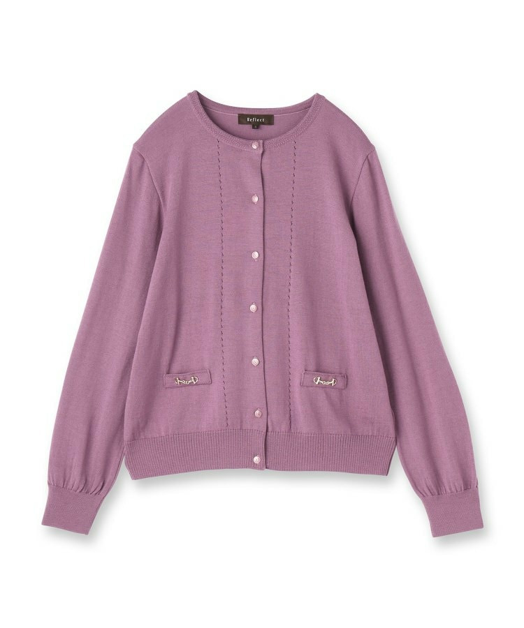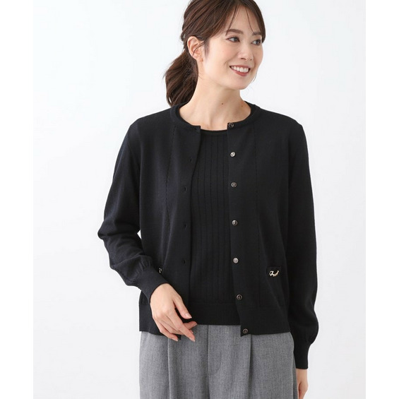 ベーシックな中にもアクセントをつけた華やかさのあるカーディガン。