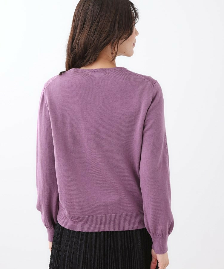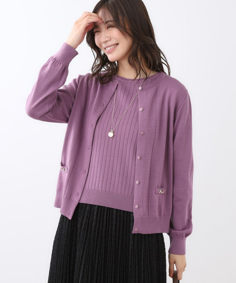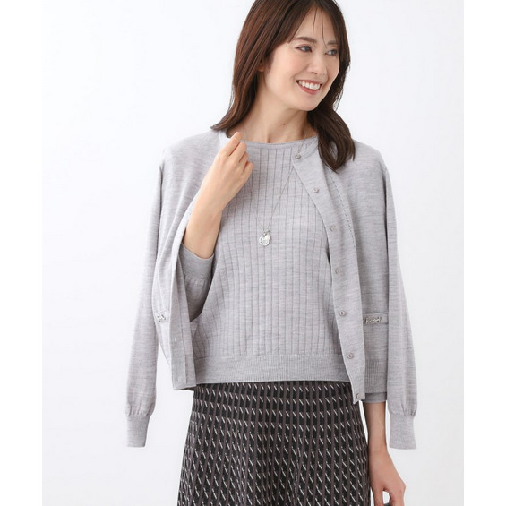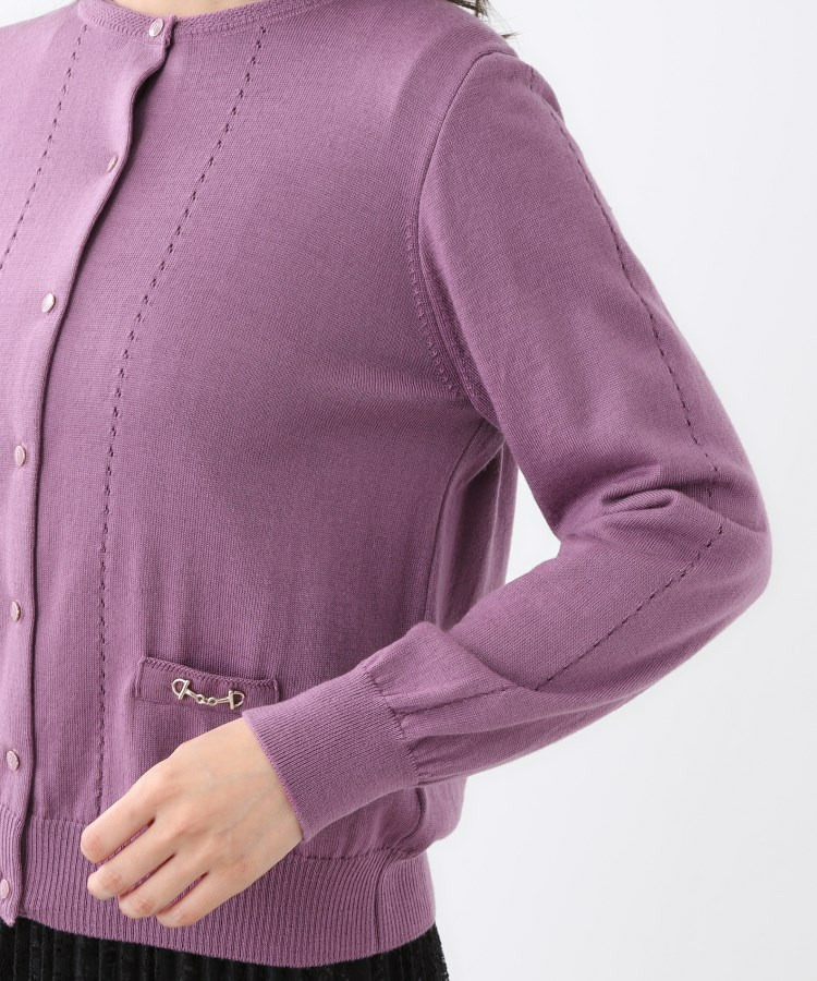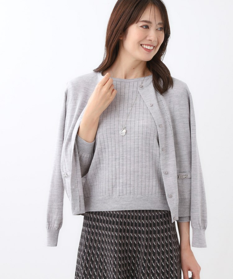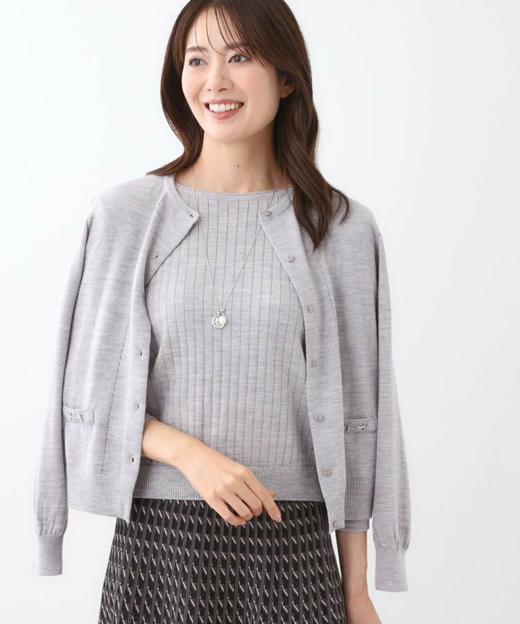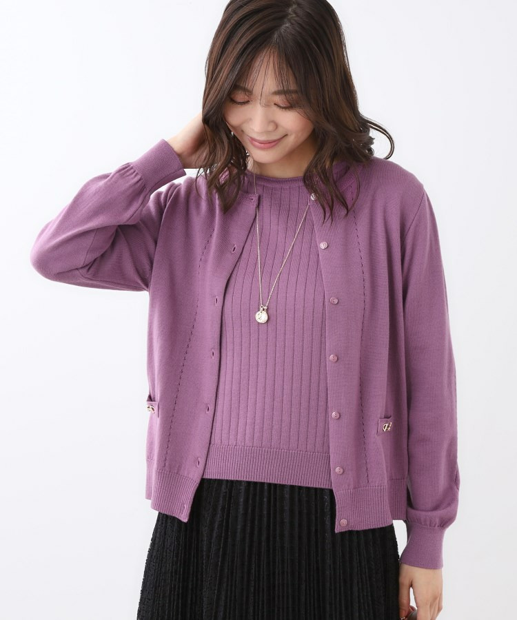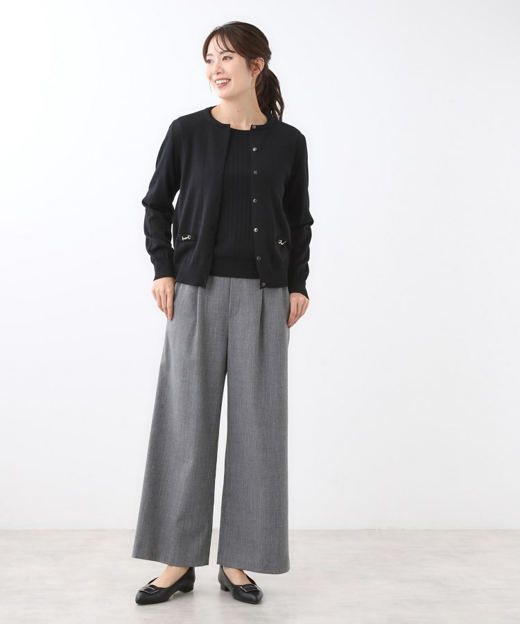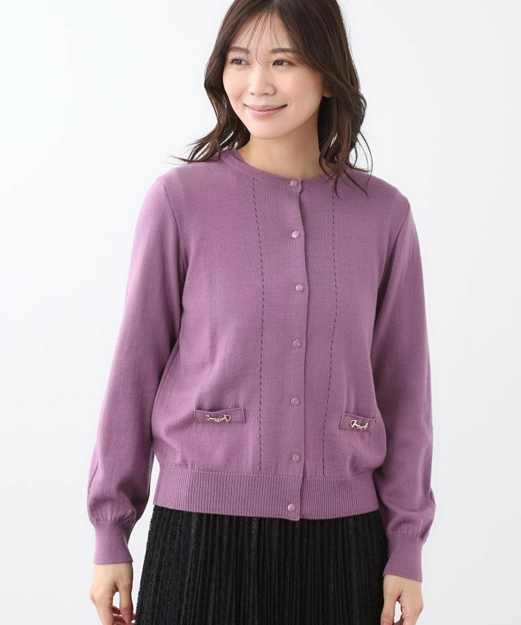 ベーシックな中にもアクセントをつけた華やかさのあるカーディガン。
