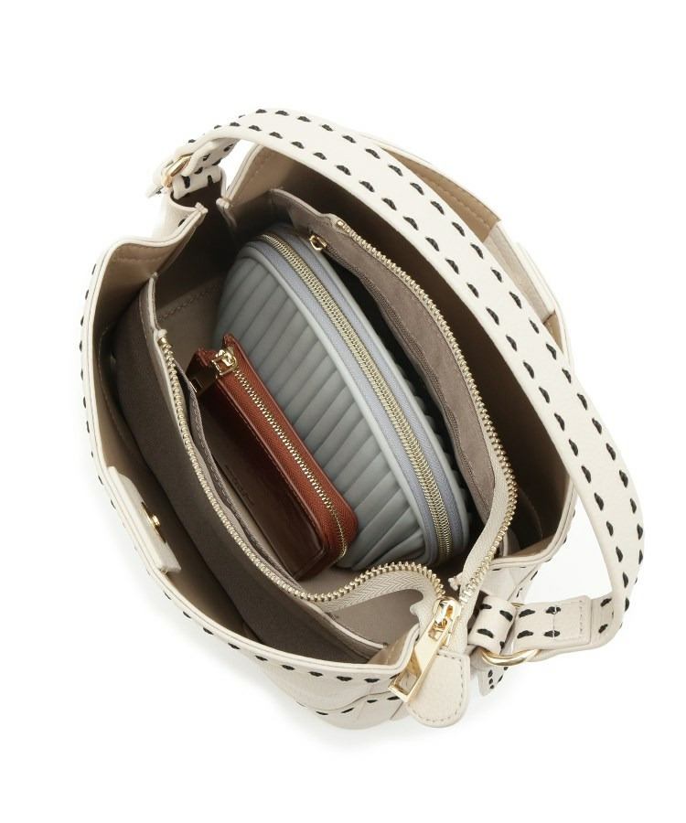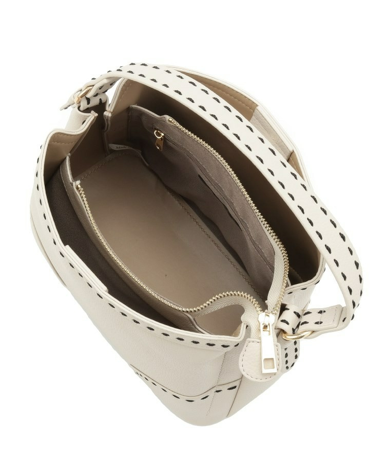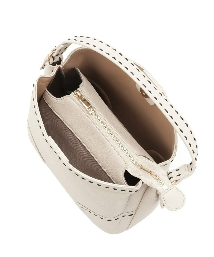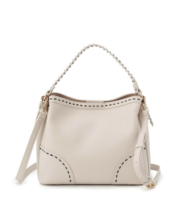 【収納力◎/付属ストラップあり】バイカラーステッチバッグ