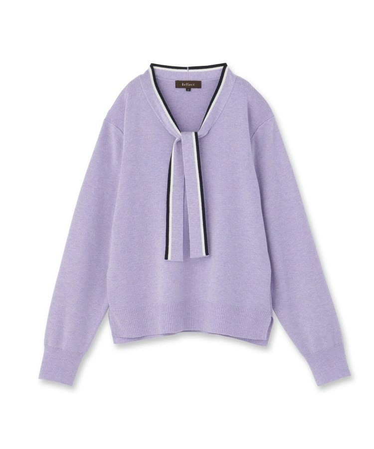 なめらかで発色の良い素材を使用し、全体にプレーティングすることで程よい肉感を実現した3配色のボウタイ付きニット。