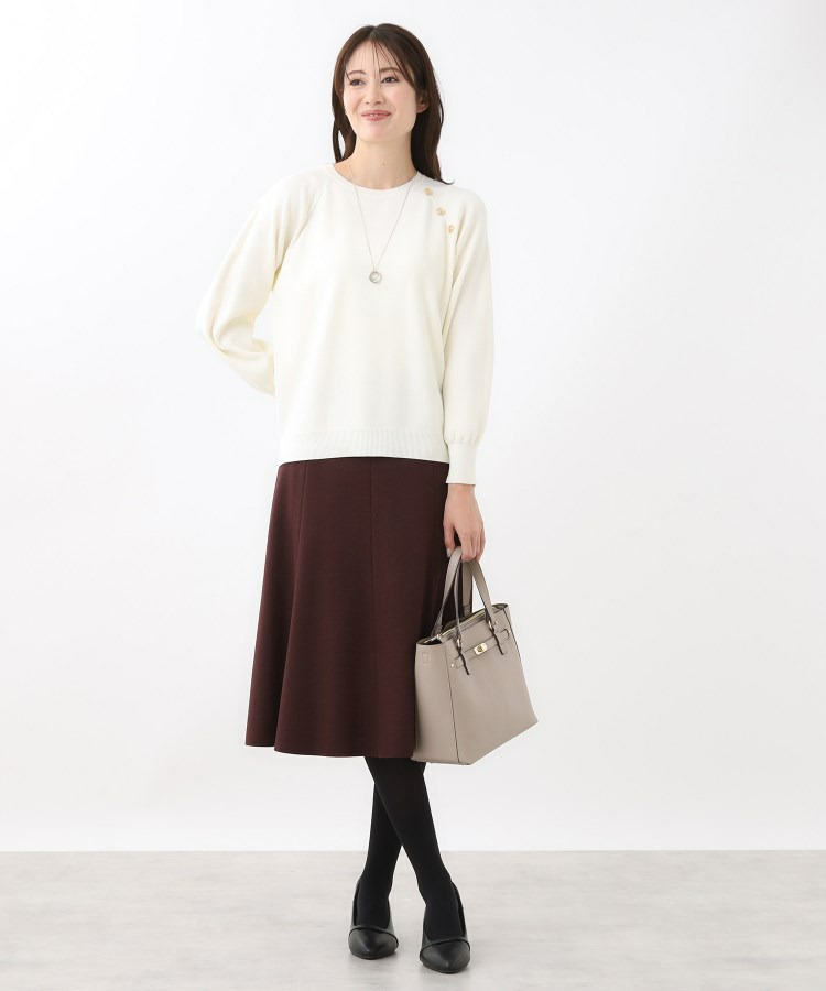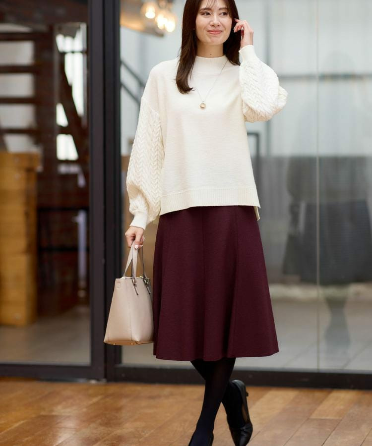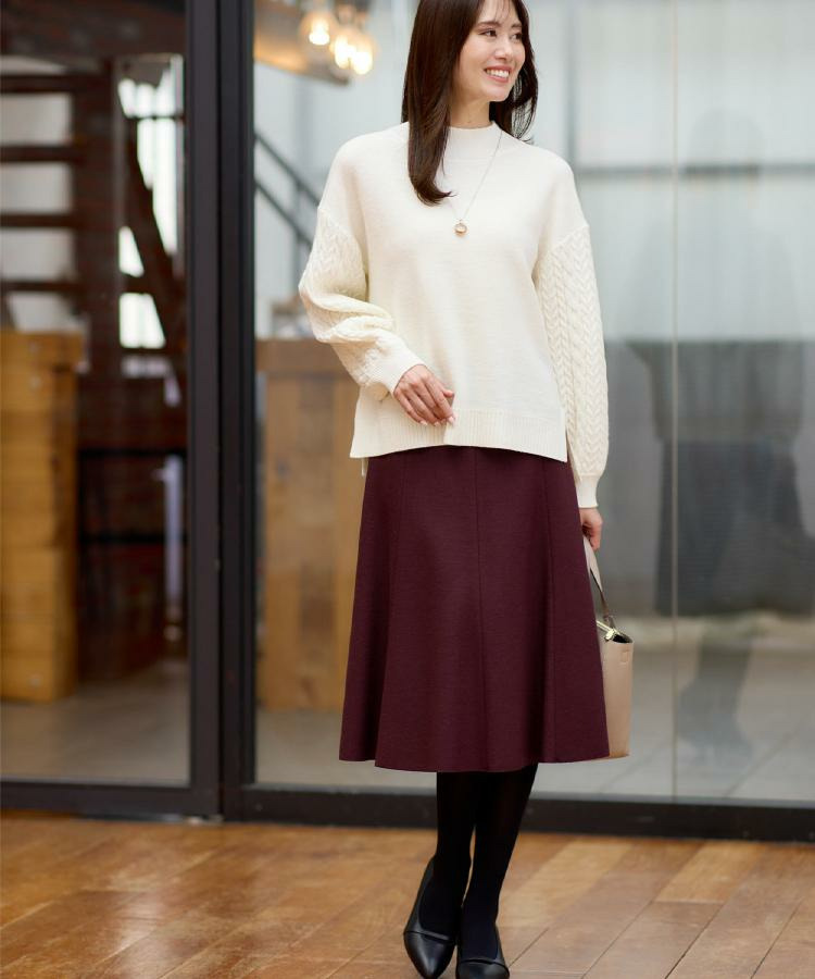 どんなスタイルにも合わせやすい、落ち感のあるキレイなシルエットが上品なスカート。