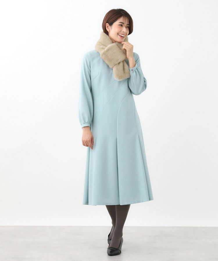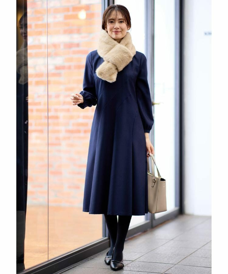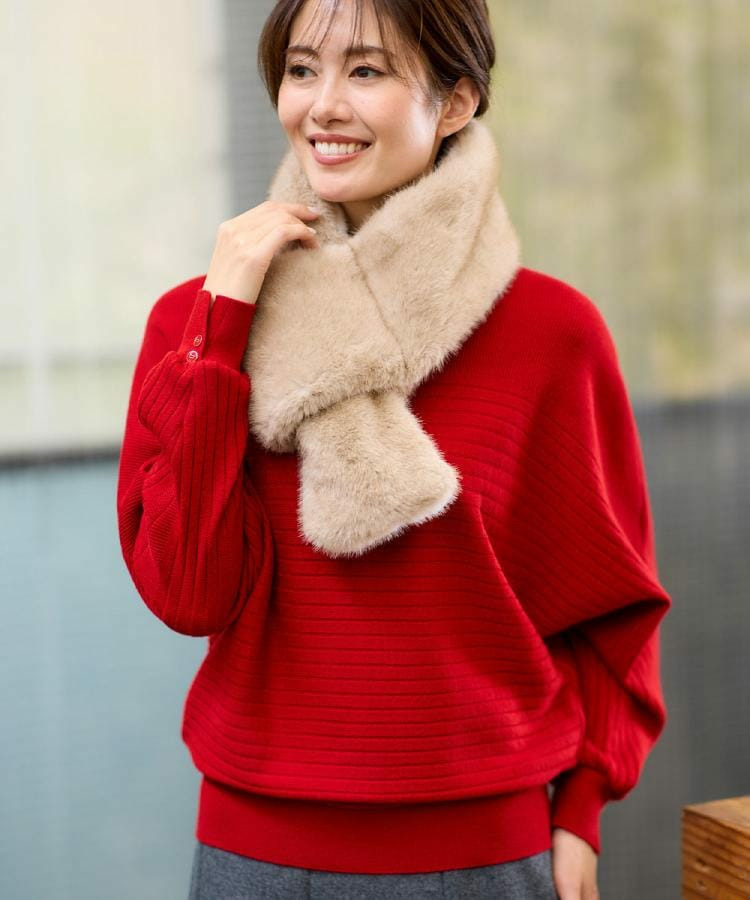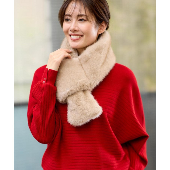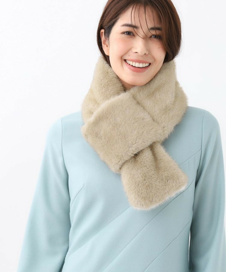 コンパクトなサイズ感なのでコートの衿元にすっきりと収まり、室内で少し肌寒い時の肩掛けとしても活躍してくれます。