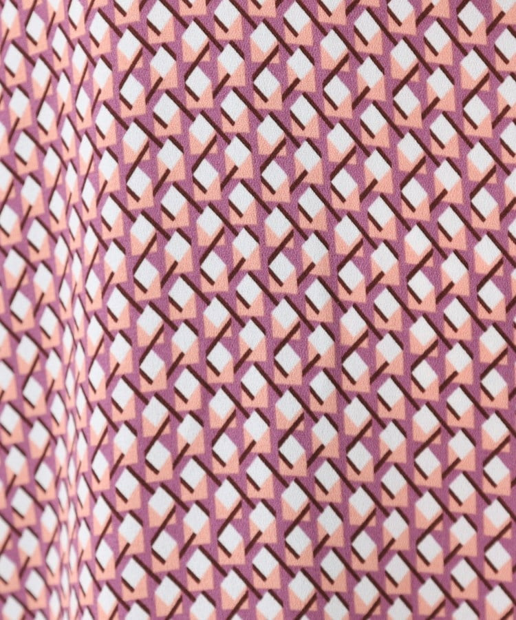 膨らみ感と優しい風合い、ドレープ性のある135Dのポリエステル梨地ジョーゼットに、インポート図案をプリントした素材です。