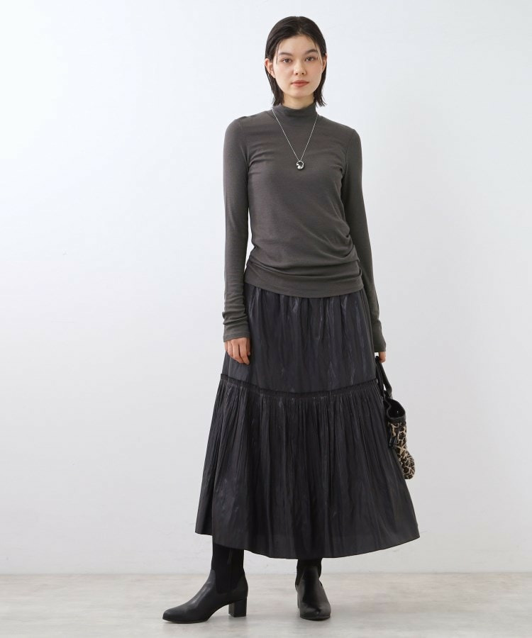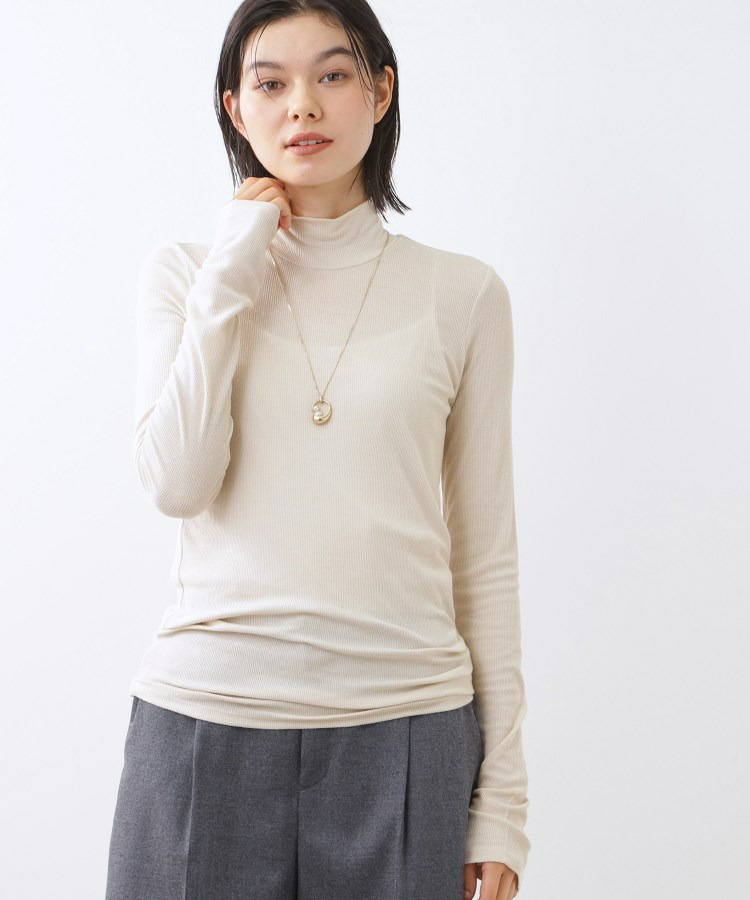 柔らかい薄手の素材感でおつくりしたタートルネックニット。