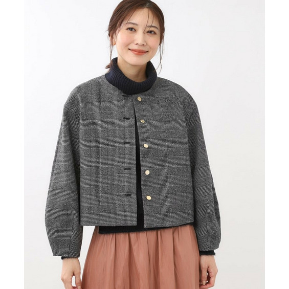 クラシカルなグレンチェック柄とふんわりとしたスリーブが特徴のショート丈ジャコット。