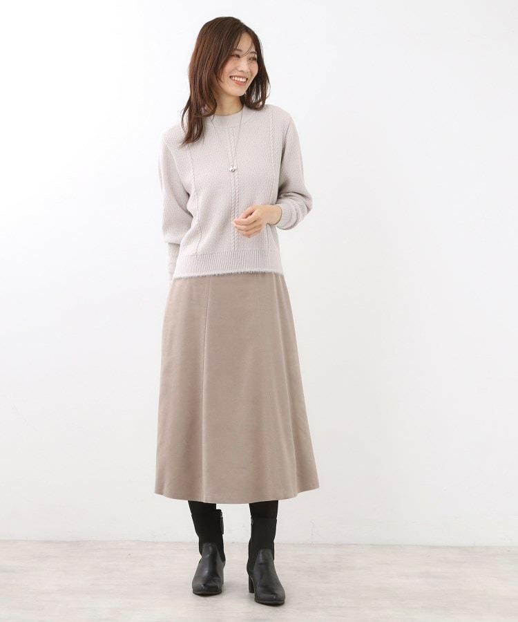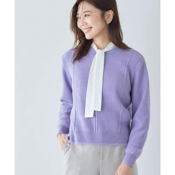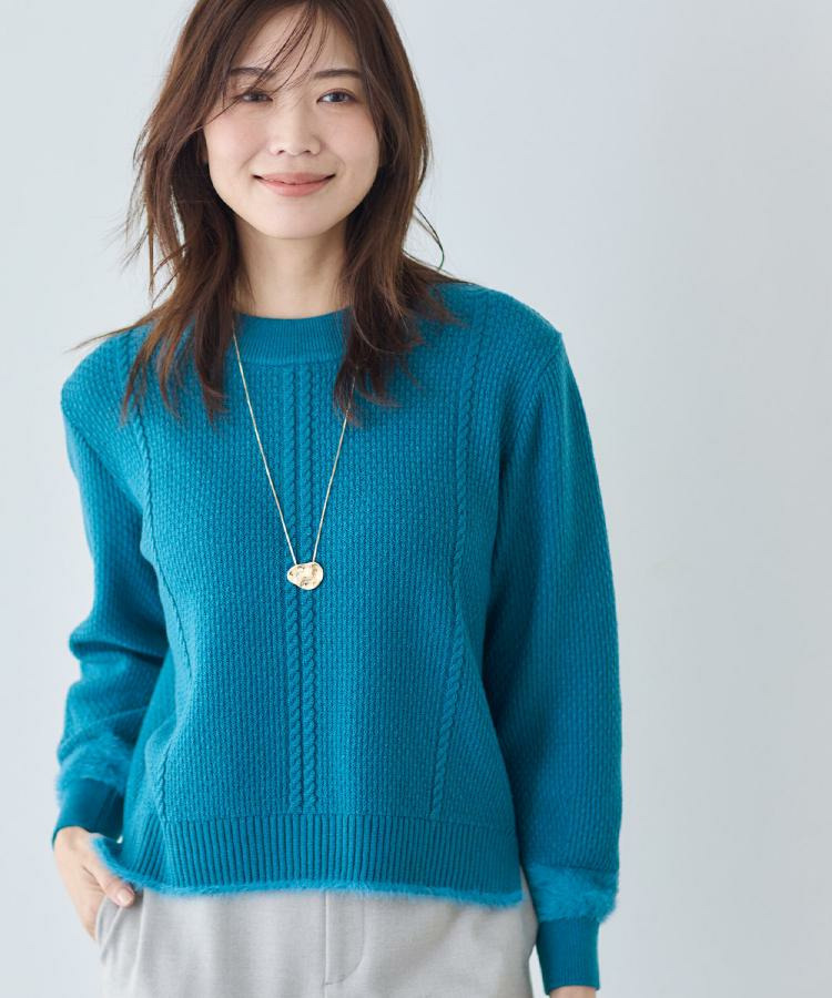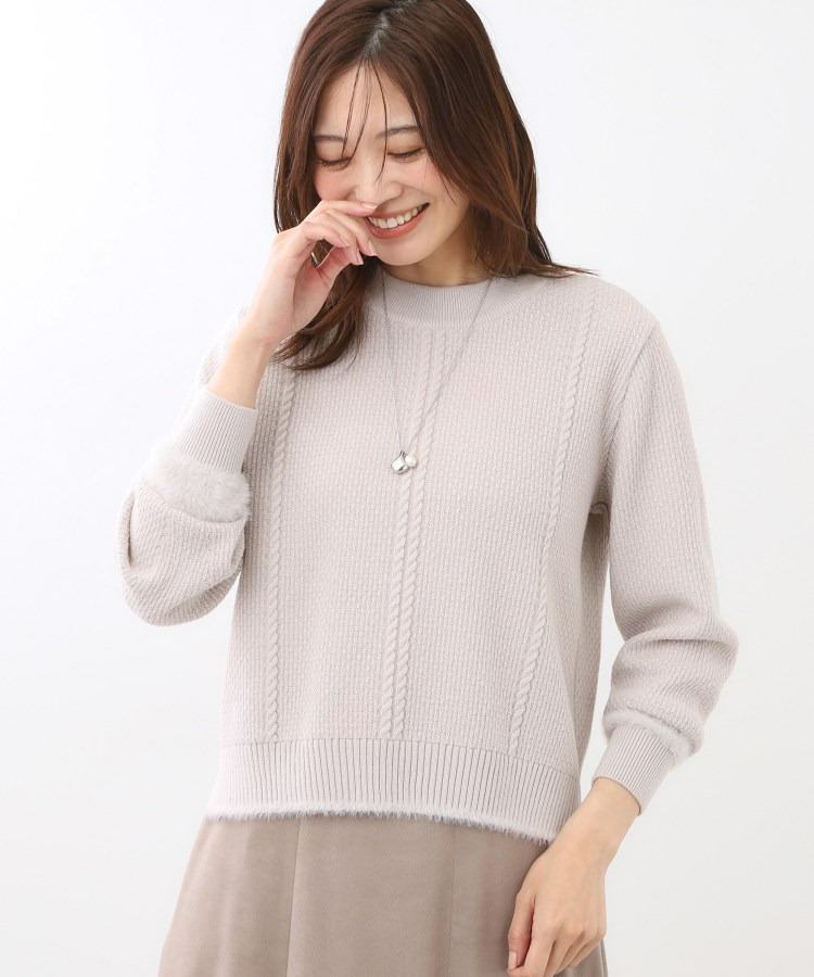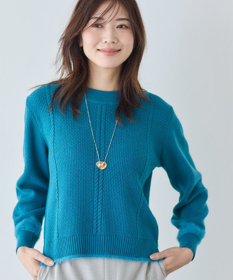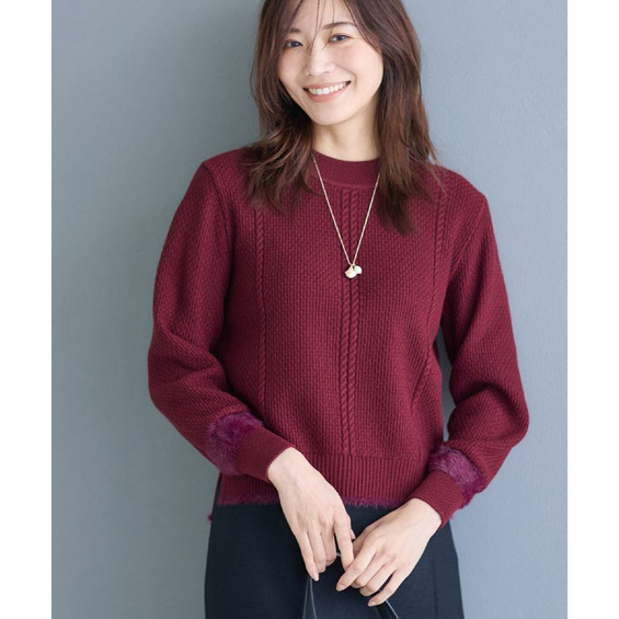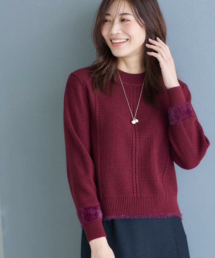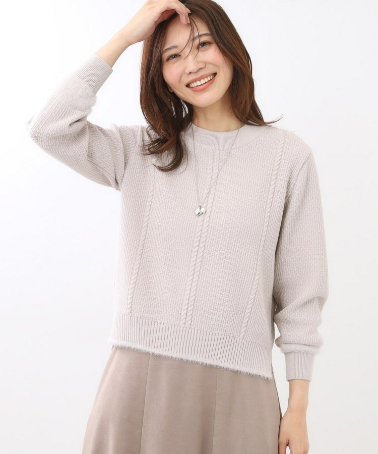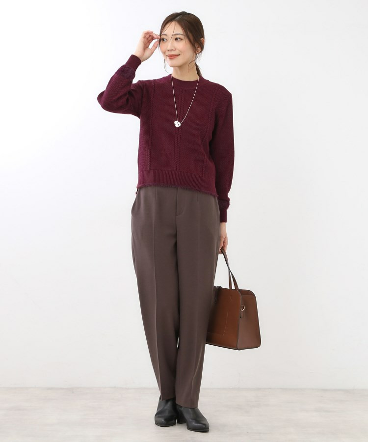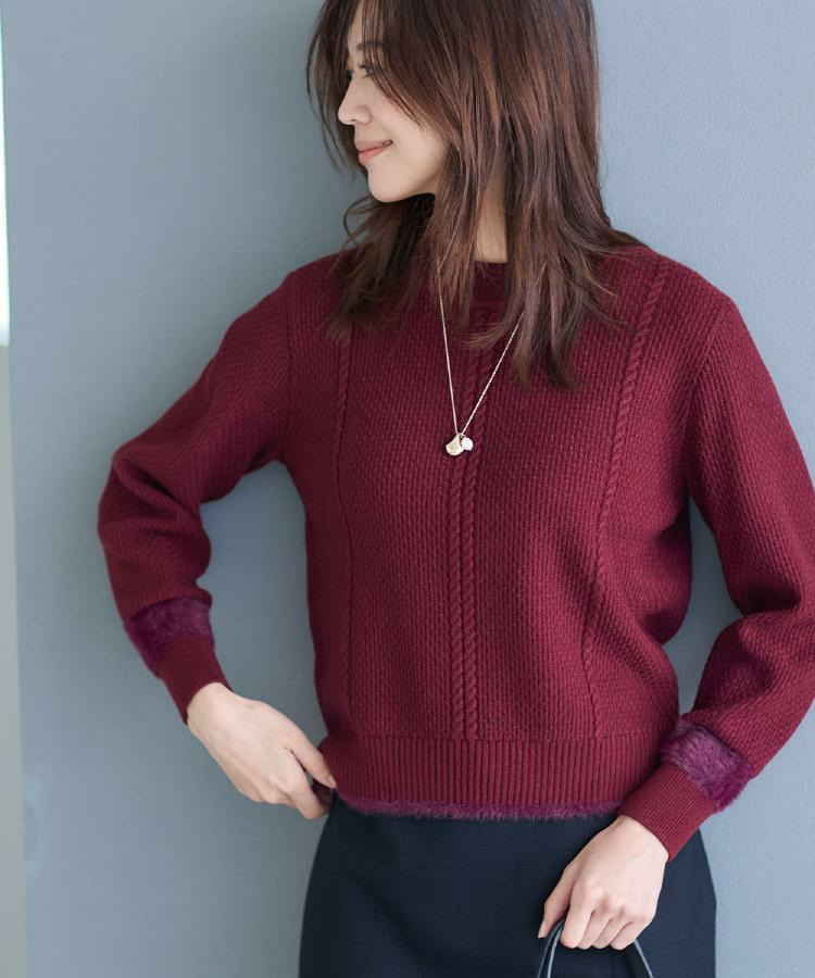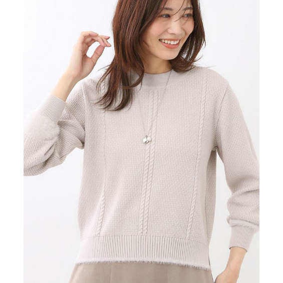 シンプルで上品ながら、ケーブル柄がアクセントになった華やかさとプルオーバーニット。