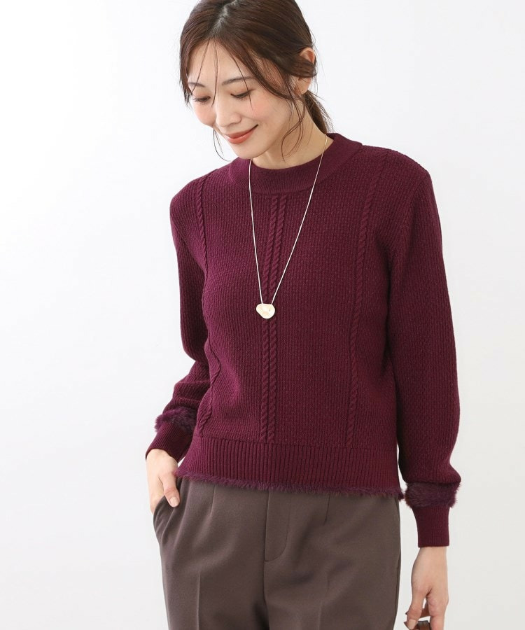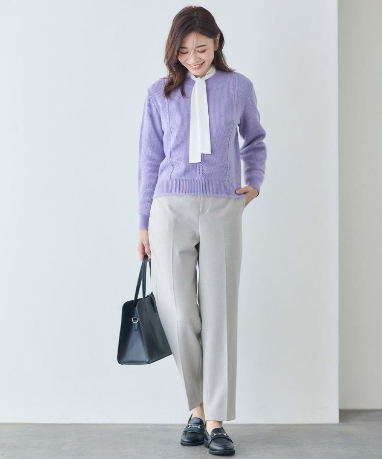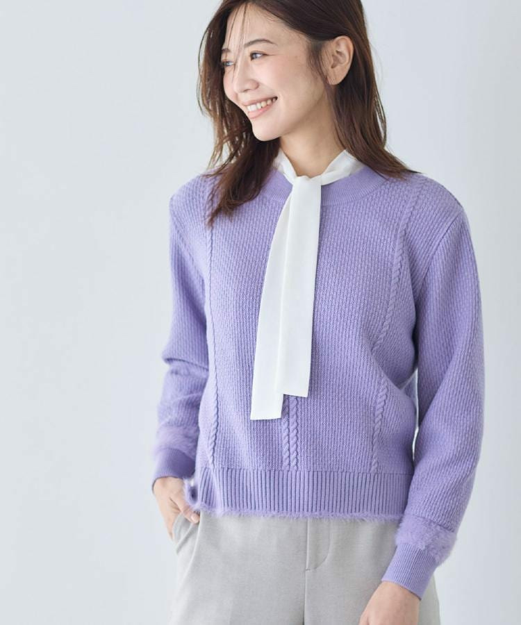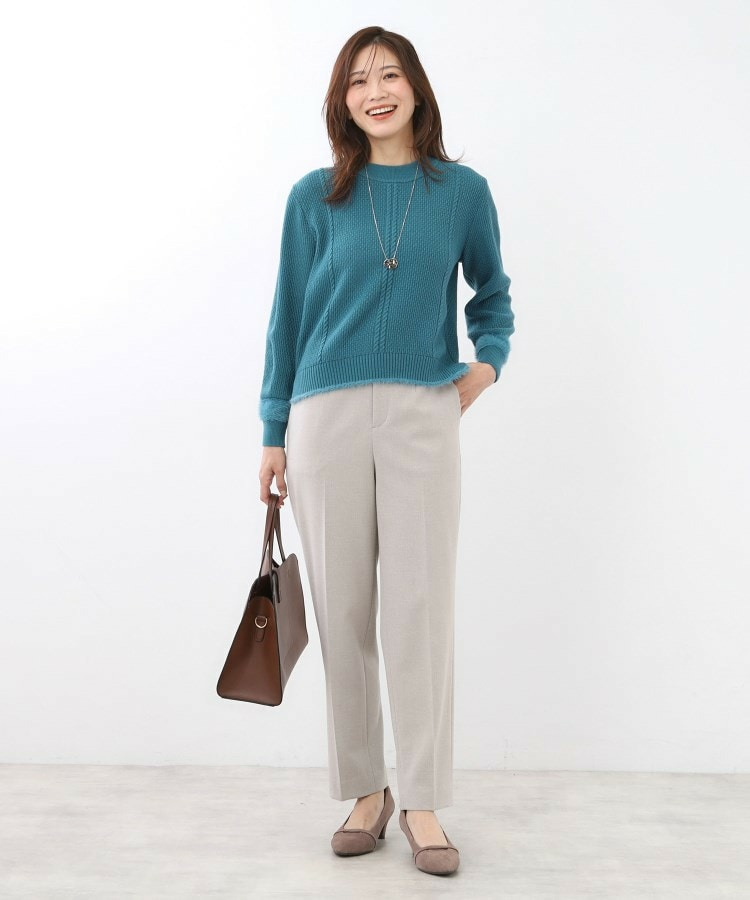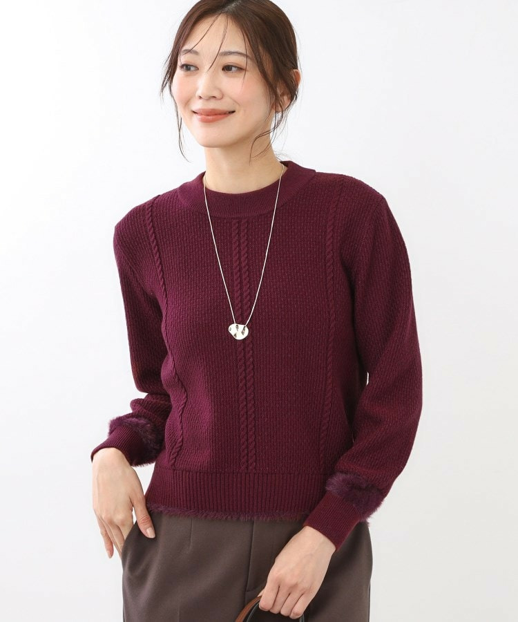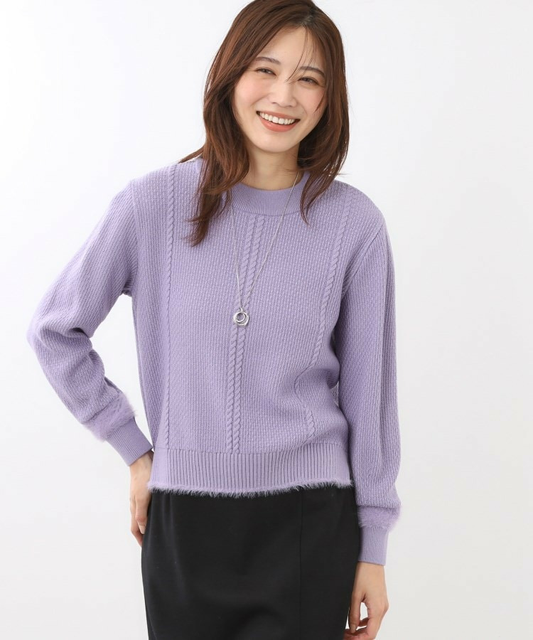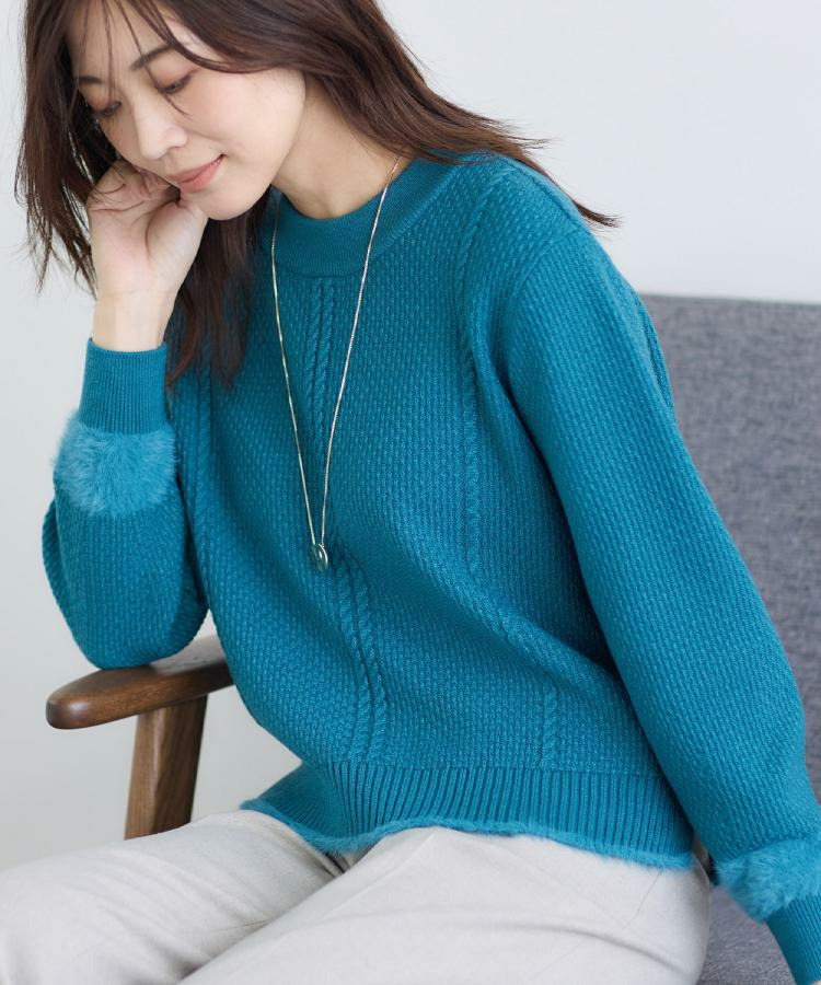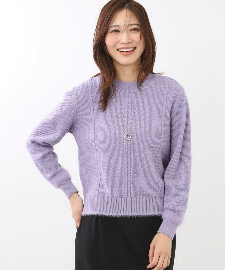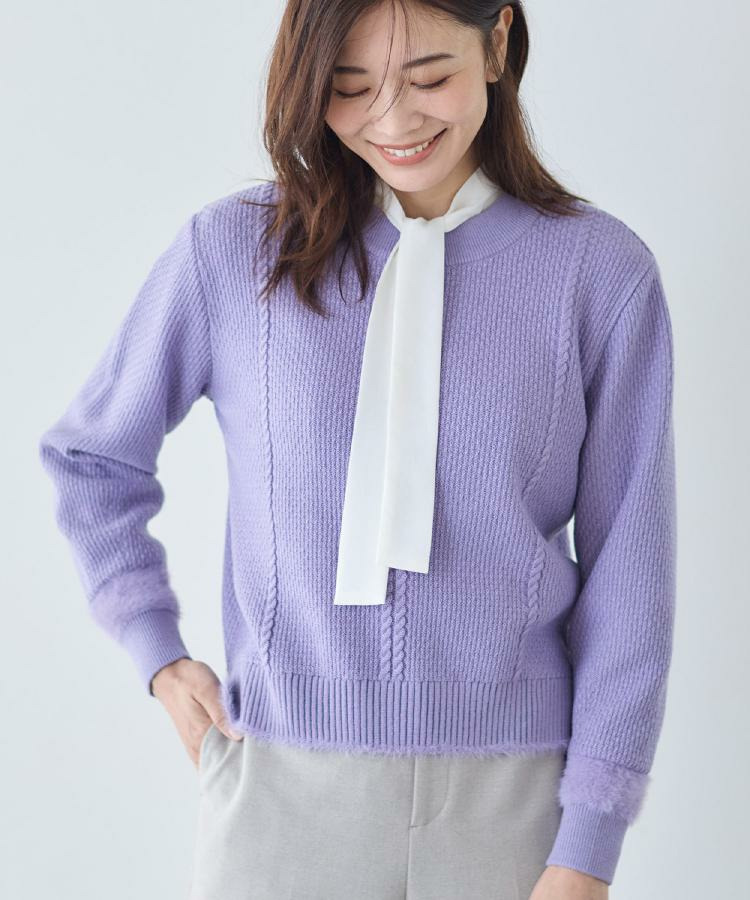 シンプルで上品ながら、ケーブル柄がアクセントになった華やかさとプルオーバーニット。