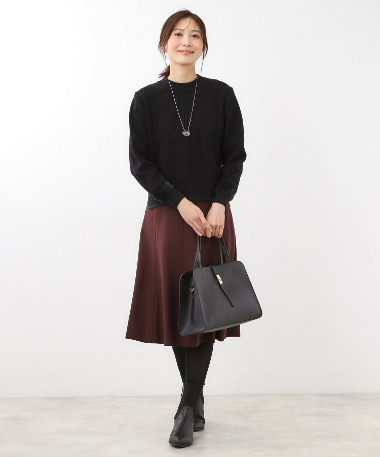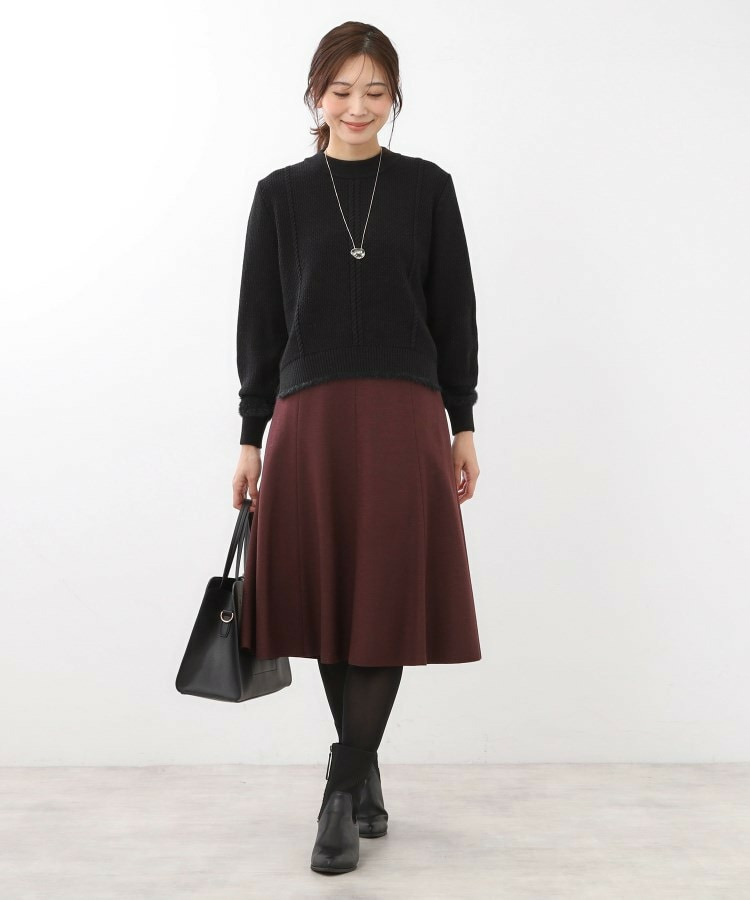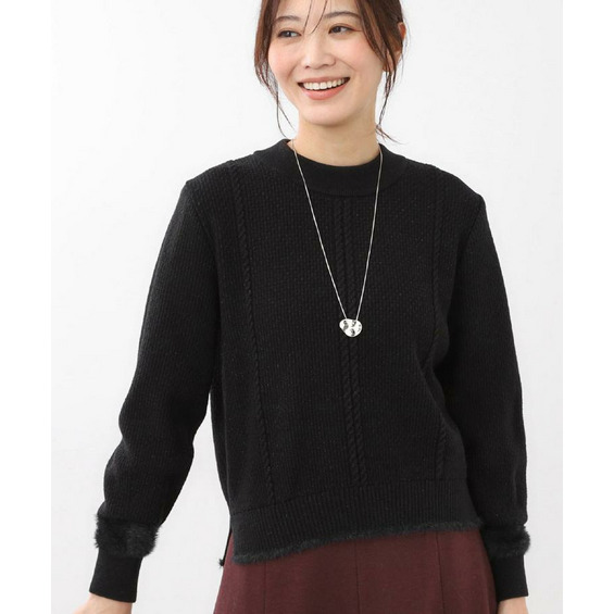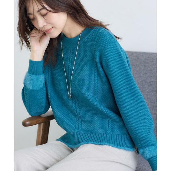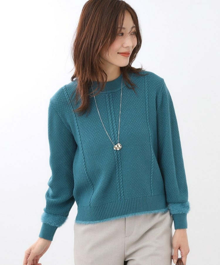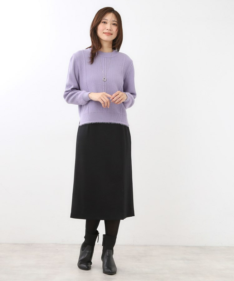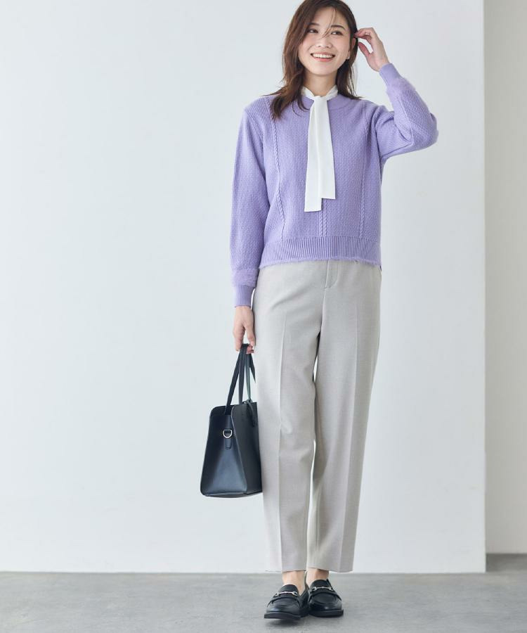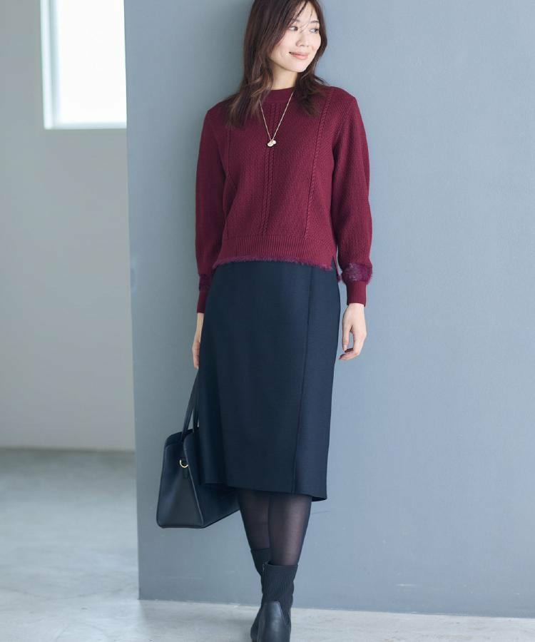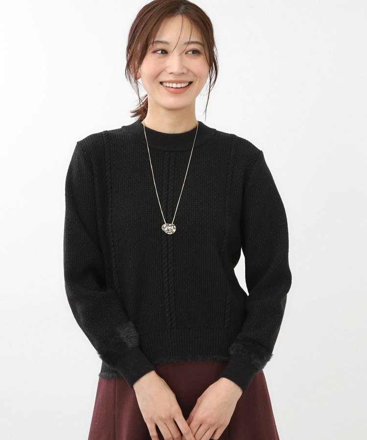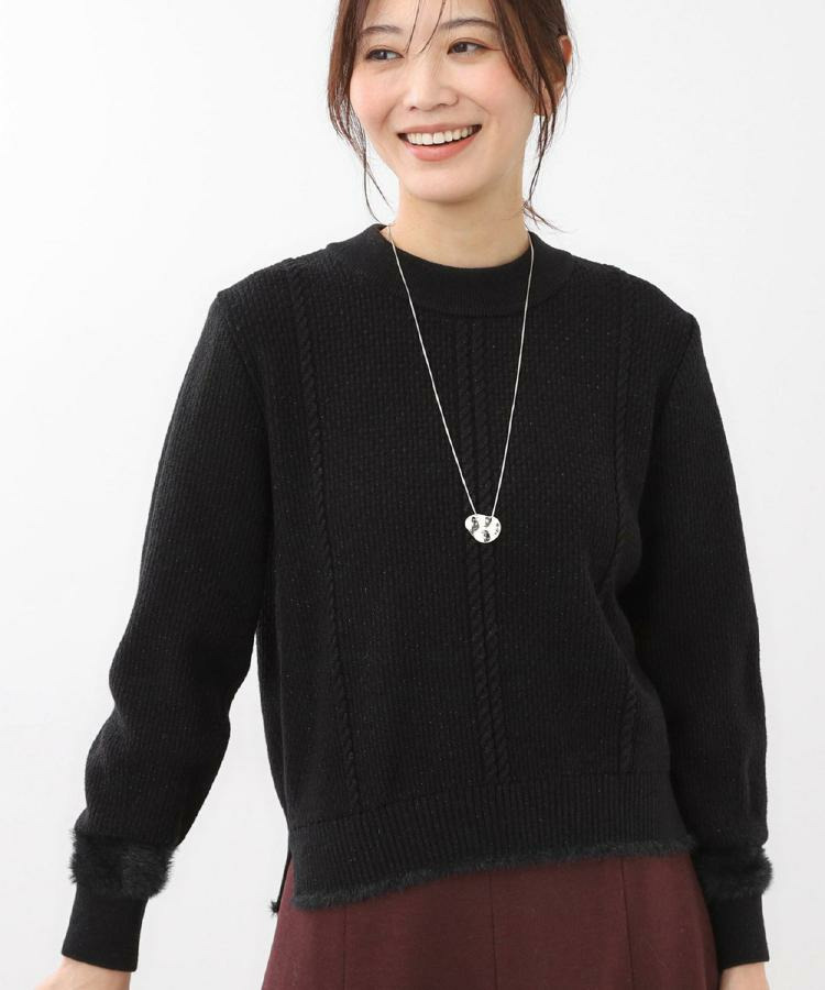 シンプルで上品ながら、ケーブル柄がアクセントになった華やかさとプルオーバーニット。