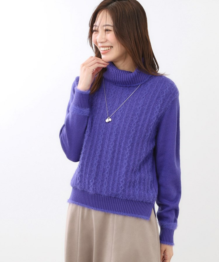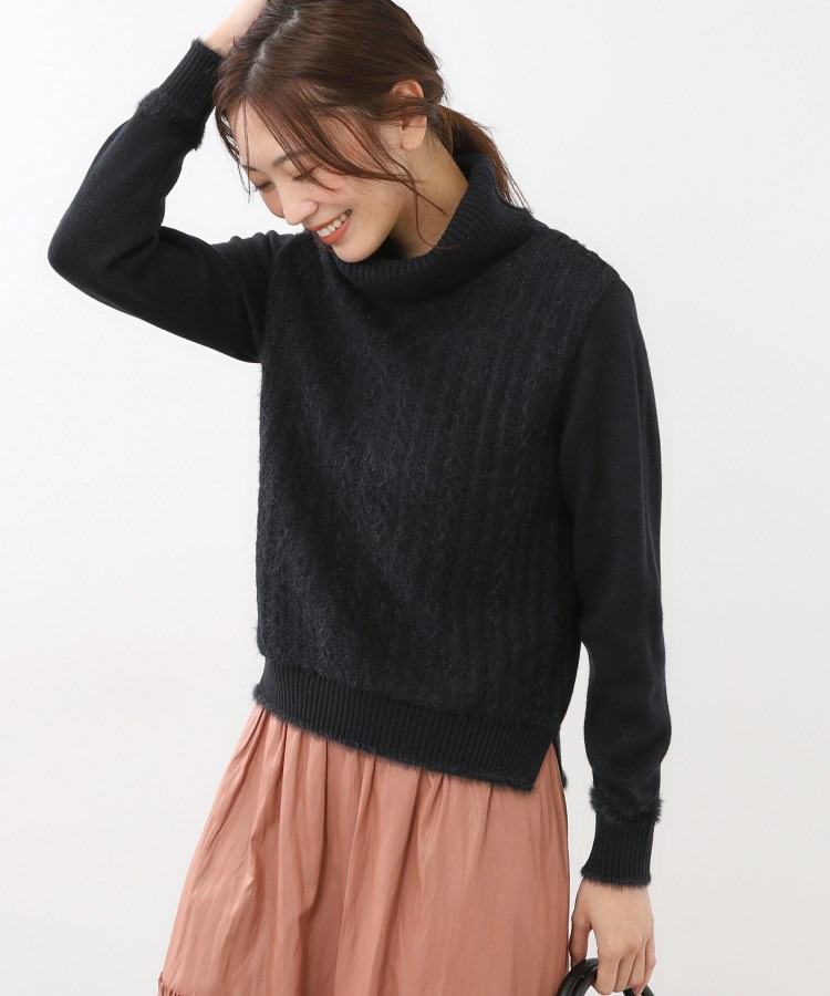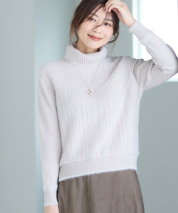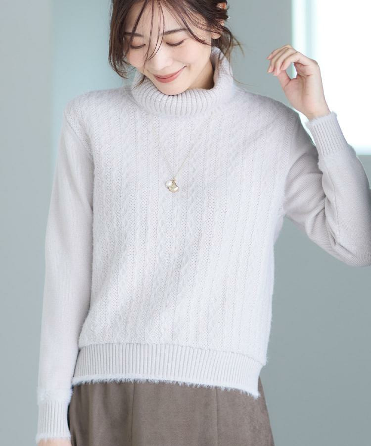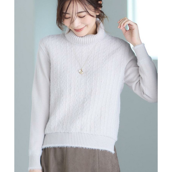 【ほんのりラメ感◎】ふわふわフェザーヤーンハイネックニット