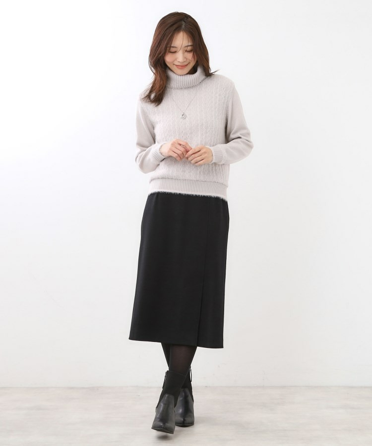 パンツにもスカートにも合わせやすいニットで、コートインやジャケットインでも着回しやすい一枚に仕上げました。