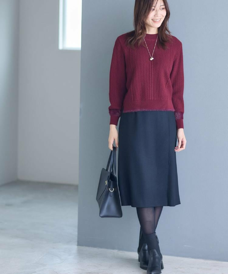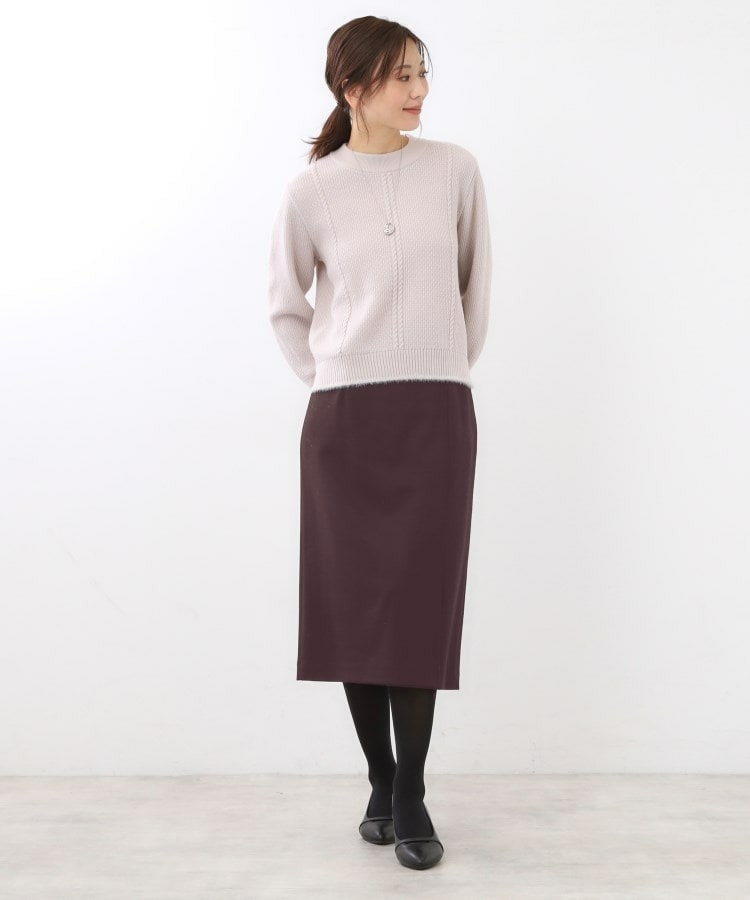キレイめのジャージ素材で仕上げた通勤にぴったりのタイトスカート。