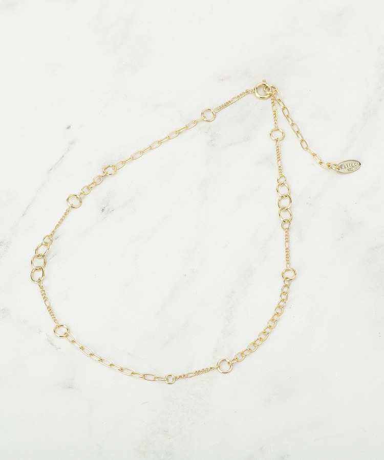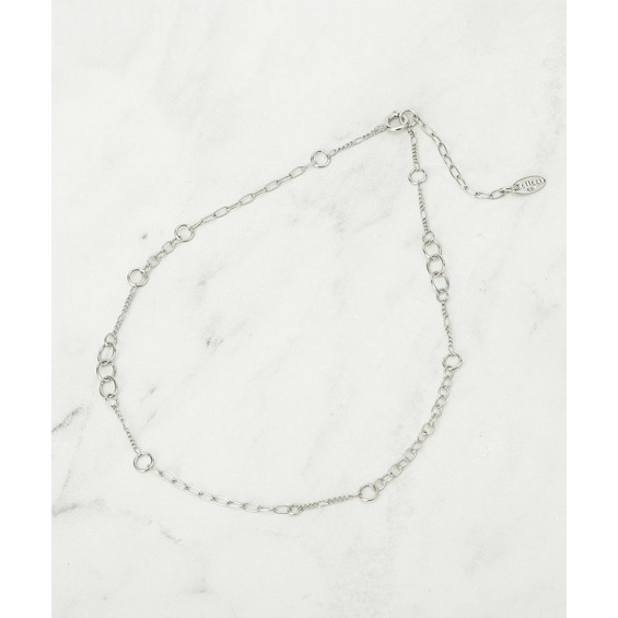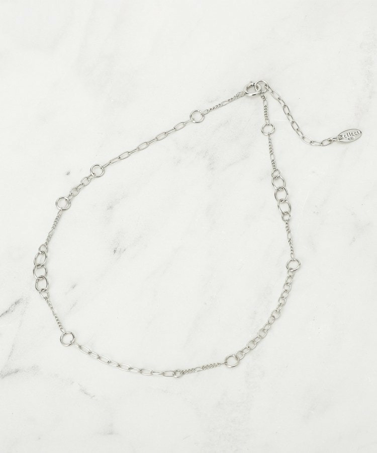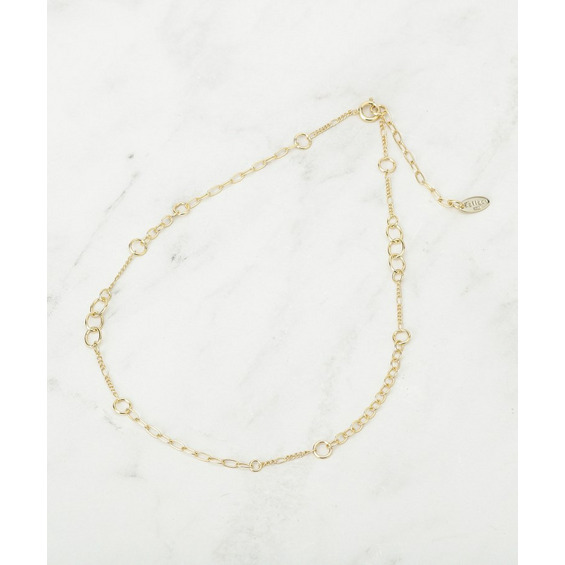 異なる大きさのチェーンを組み合わせた、一本使いでも表情豊かなショートタイプネックレス。