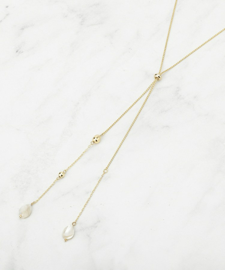 【長さ調節可】天然シェル×ラリエットデザインネックレス
