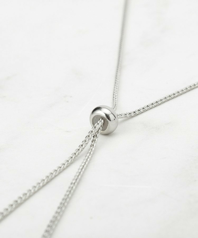 留め具のないラリエットデザインで、結び方・長さで自在にアレンジができ、後ろにまわしてバックポイントにする、チェーンを二重にして短めに使うなど、季節やスタイル、お洋服に合わせてアレンジが可能です◎。