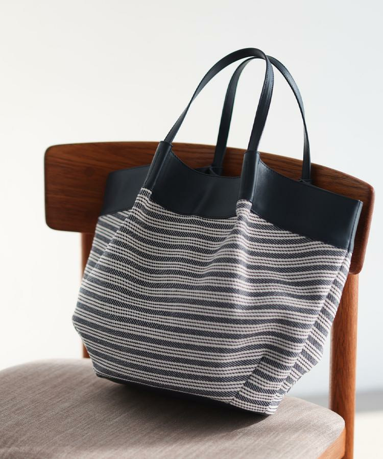 • 【しっかり容量◎】キャンバス地ボーダートートバッグ23