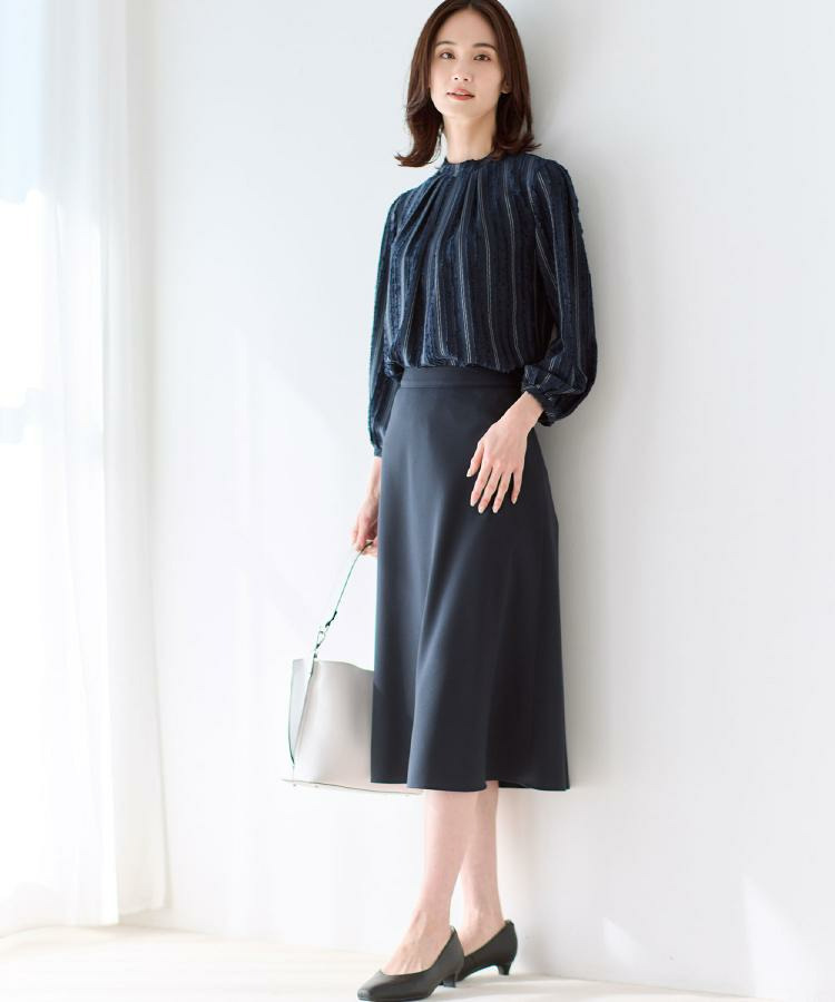 デイリーにはもちろん、きれいめコーデやオフィススタイルにも取り入れやすい一枚で、同素材のスカートとセットアップもおすすめです。
