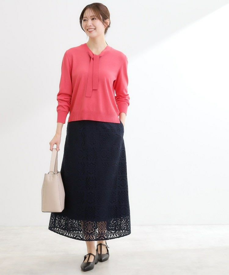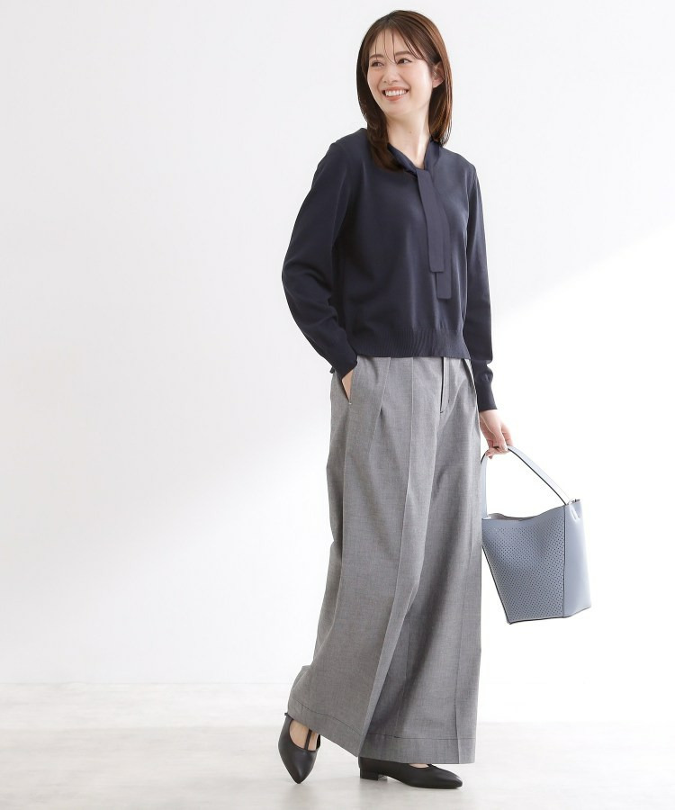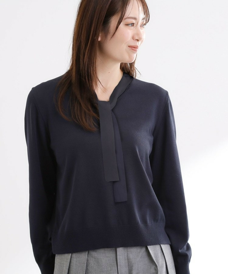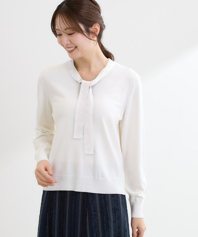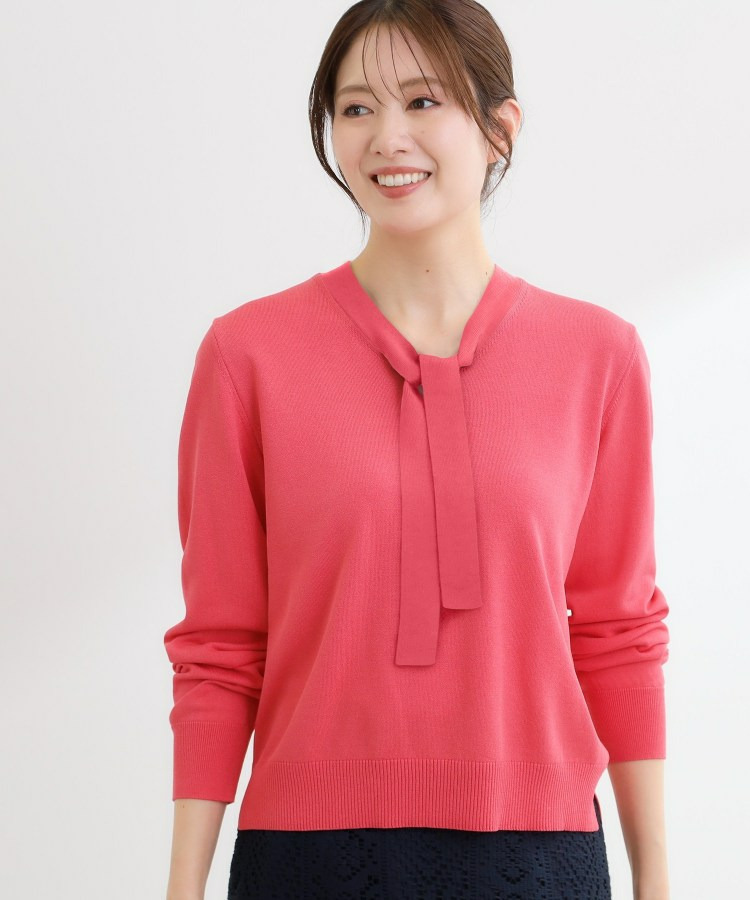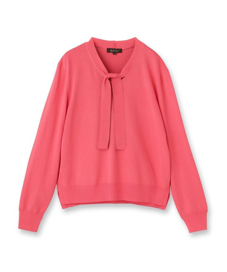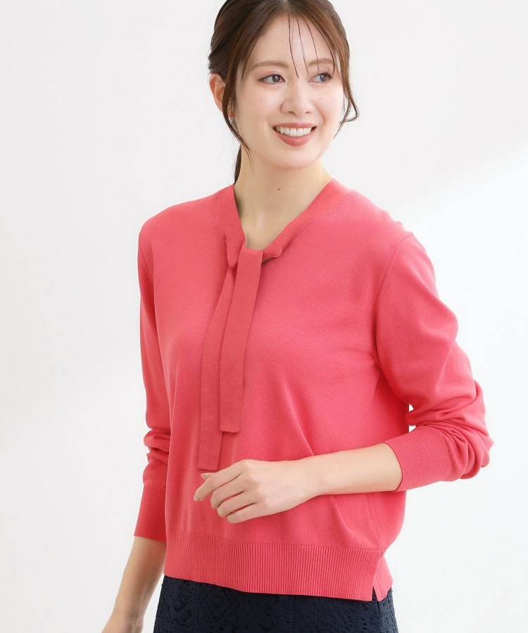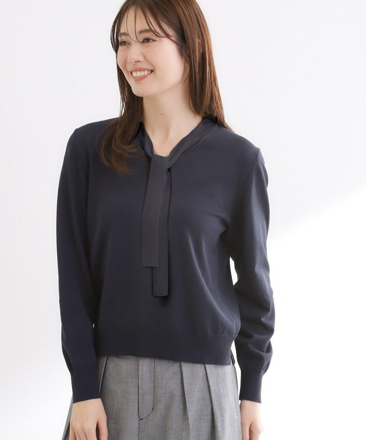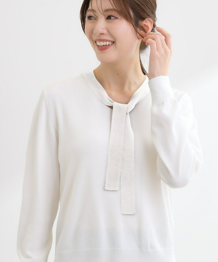 ボウタイデザインが上品で洗練されたムードを演出するハイゲージニットトップス。