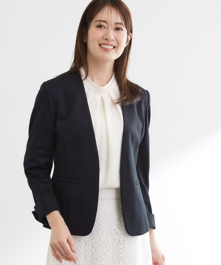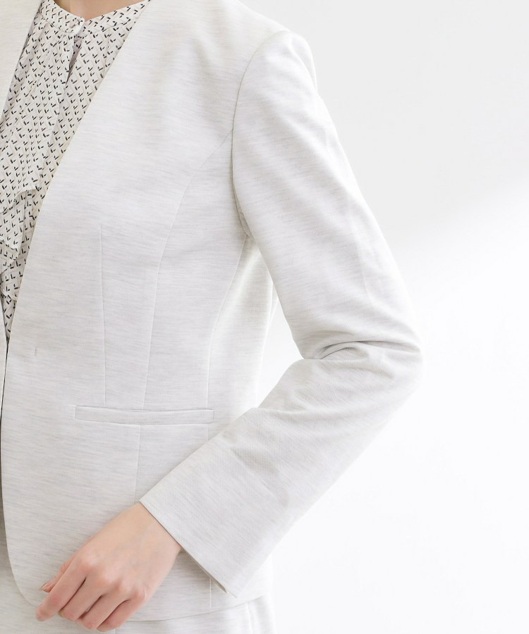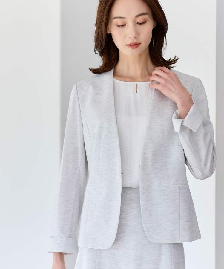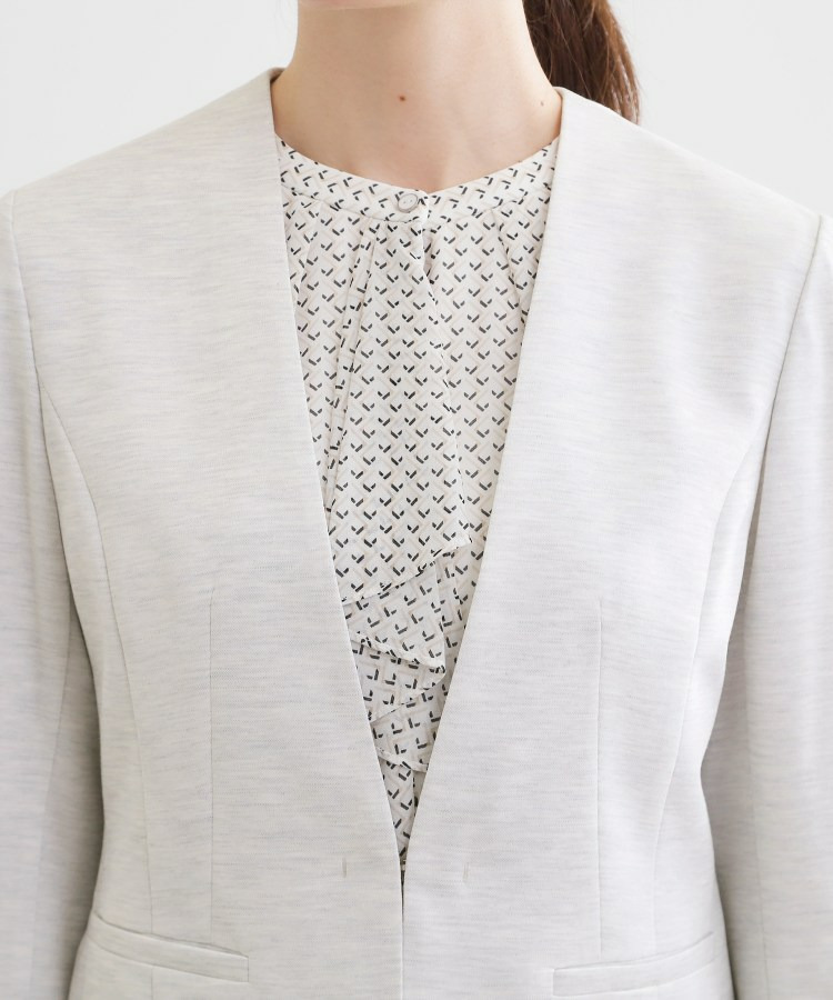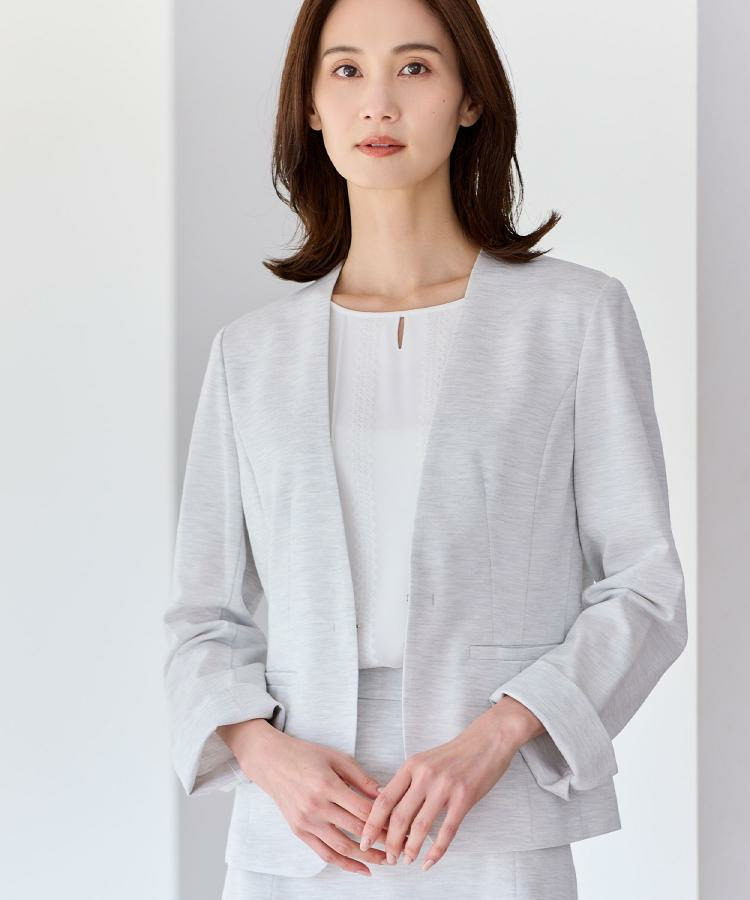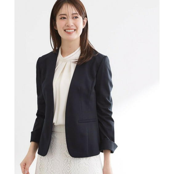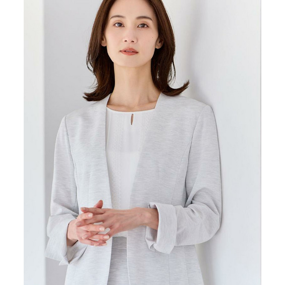 すっきりとしたVネックが上品なノーカラージャケット。