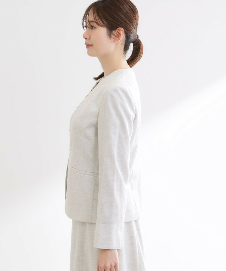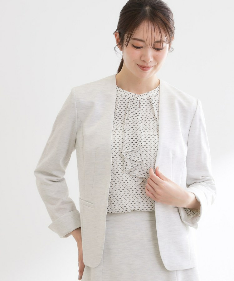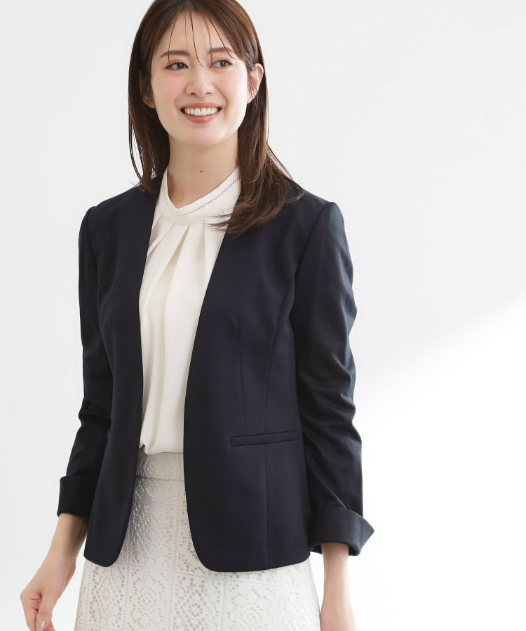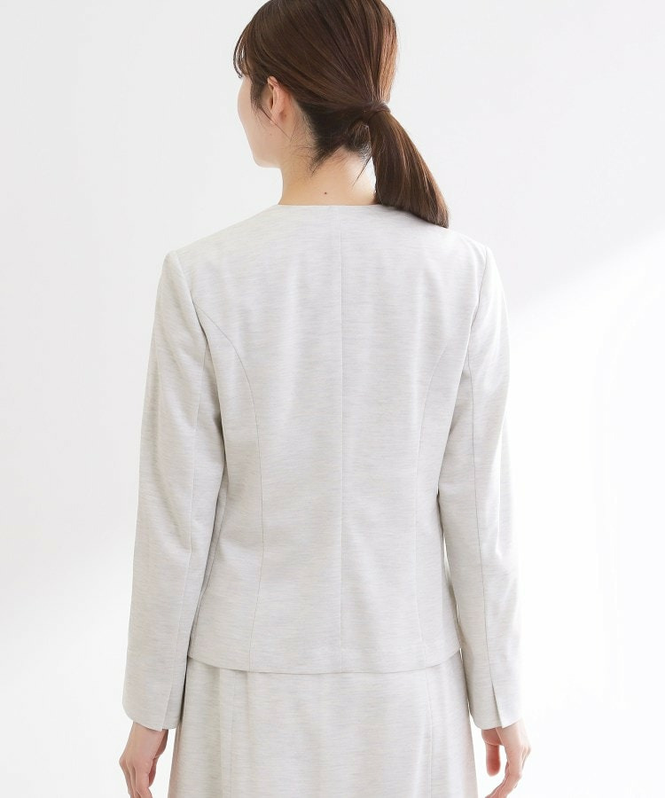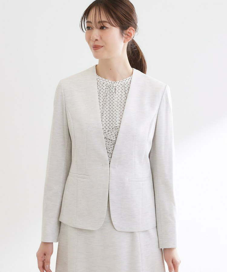 すっきりとしたVネックが上品なノーカラージャケット。