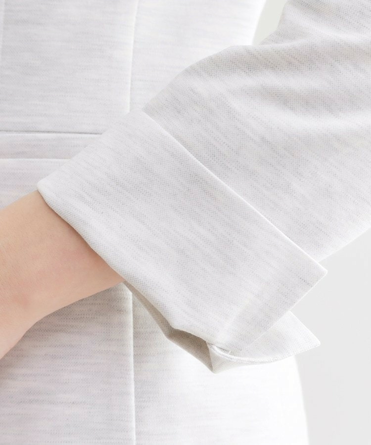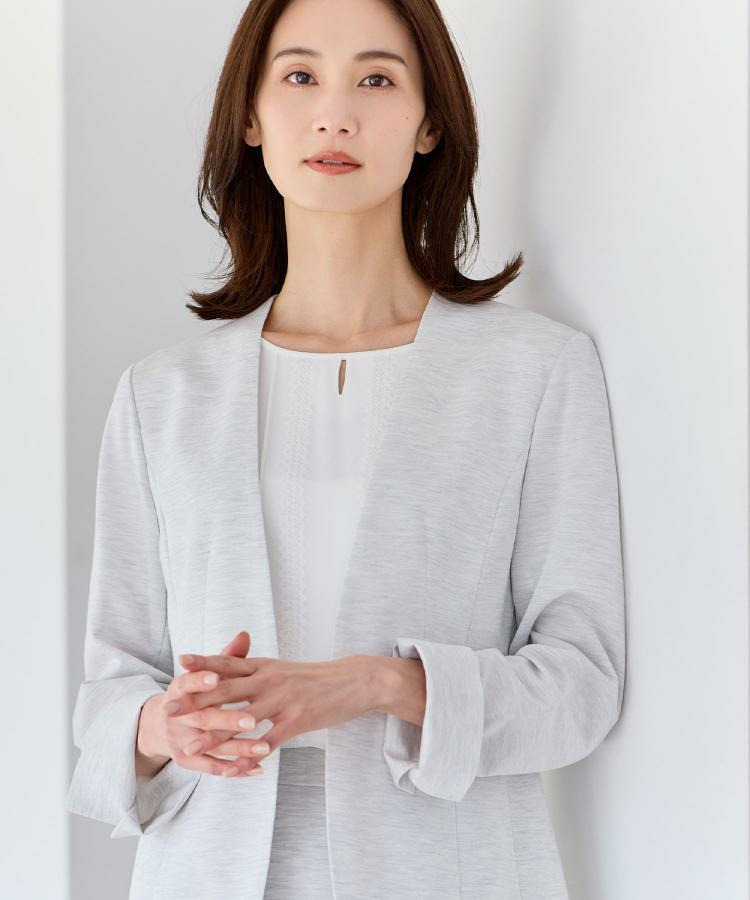 衿周りをコンパクトに仕上げることで顔周りがすっきり見え、インナーを選ばず着用いただけ、身頃にはパネルラインを入れウエスト位置をキレイに見せすっきりとしたシルエットにしています。
