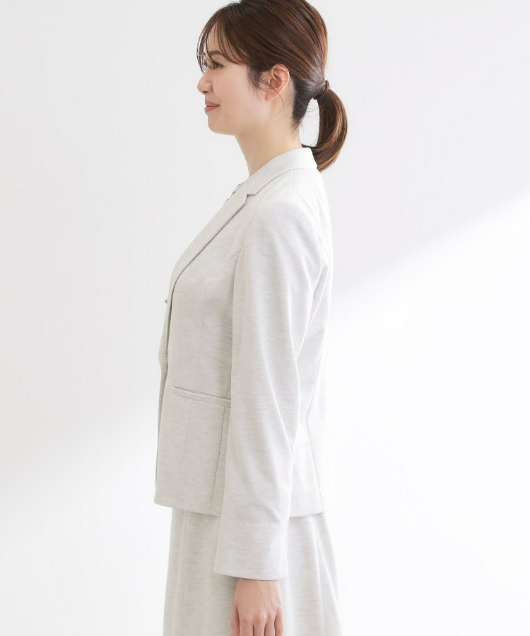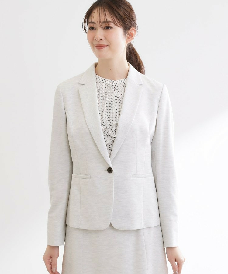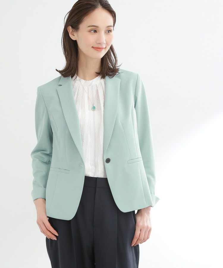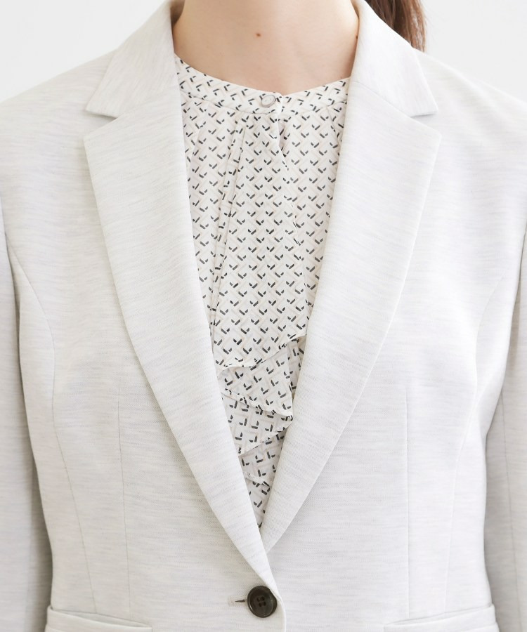 シャープなテーラードカラーとすっきりしたシルエットでオン・オフ問わず幅広いスタイリングに対応します。