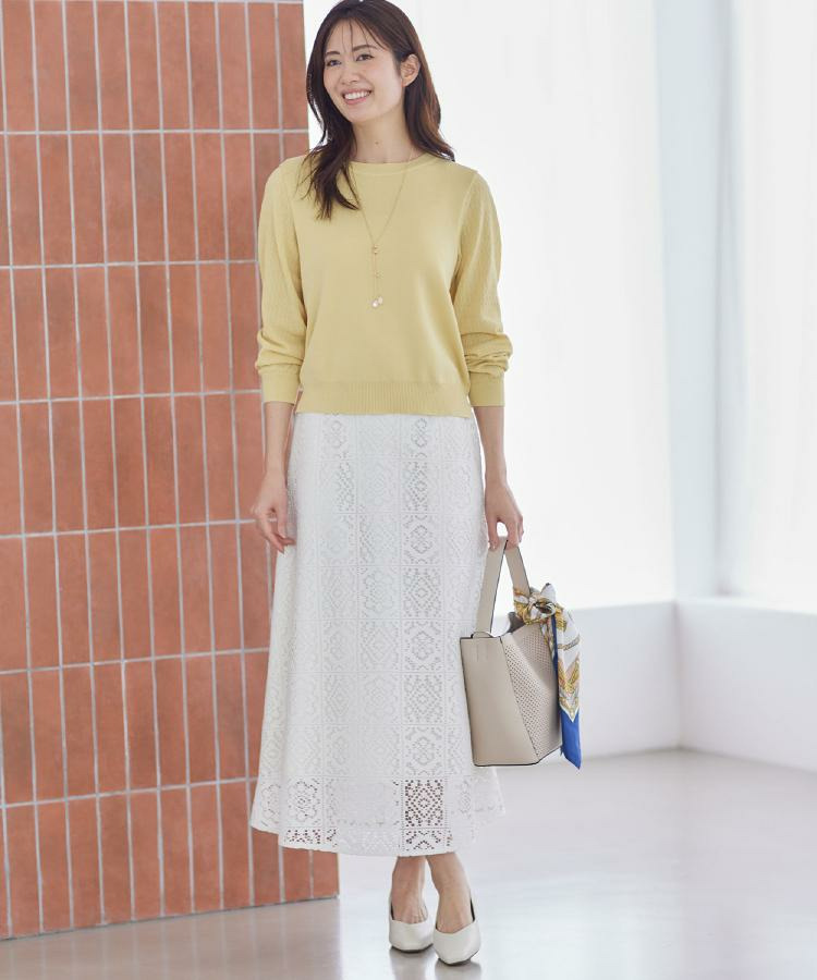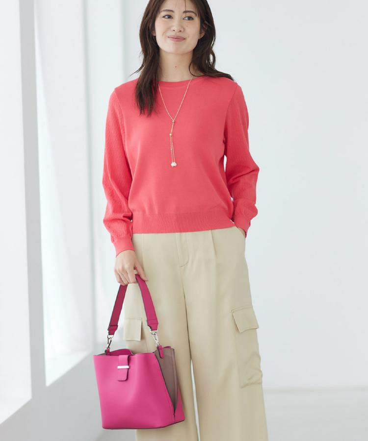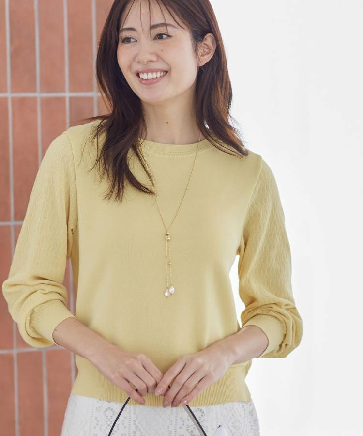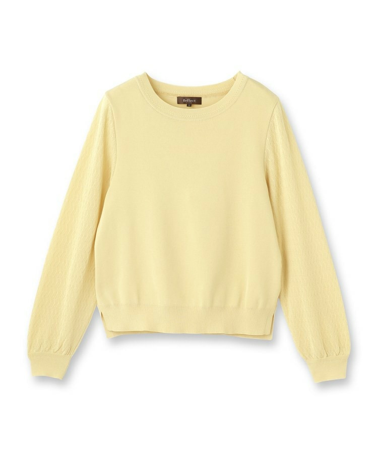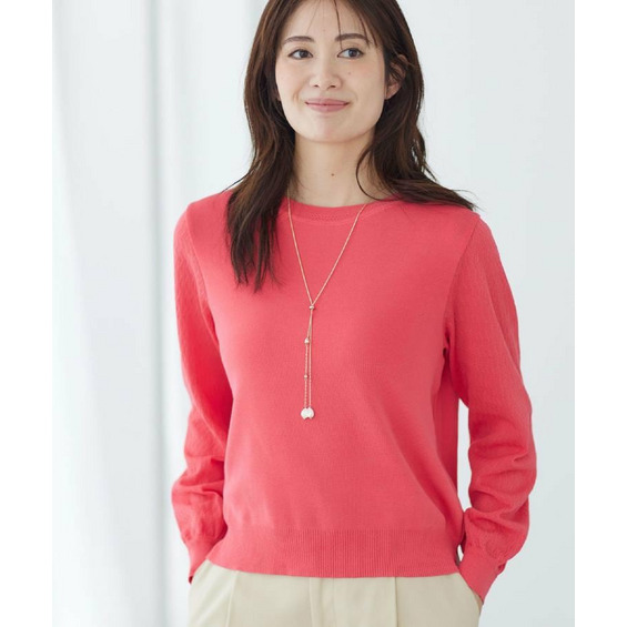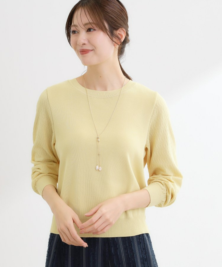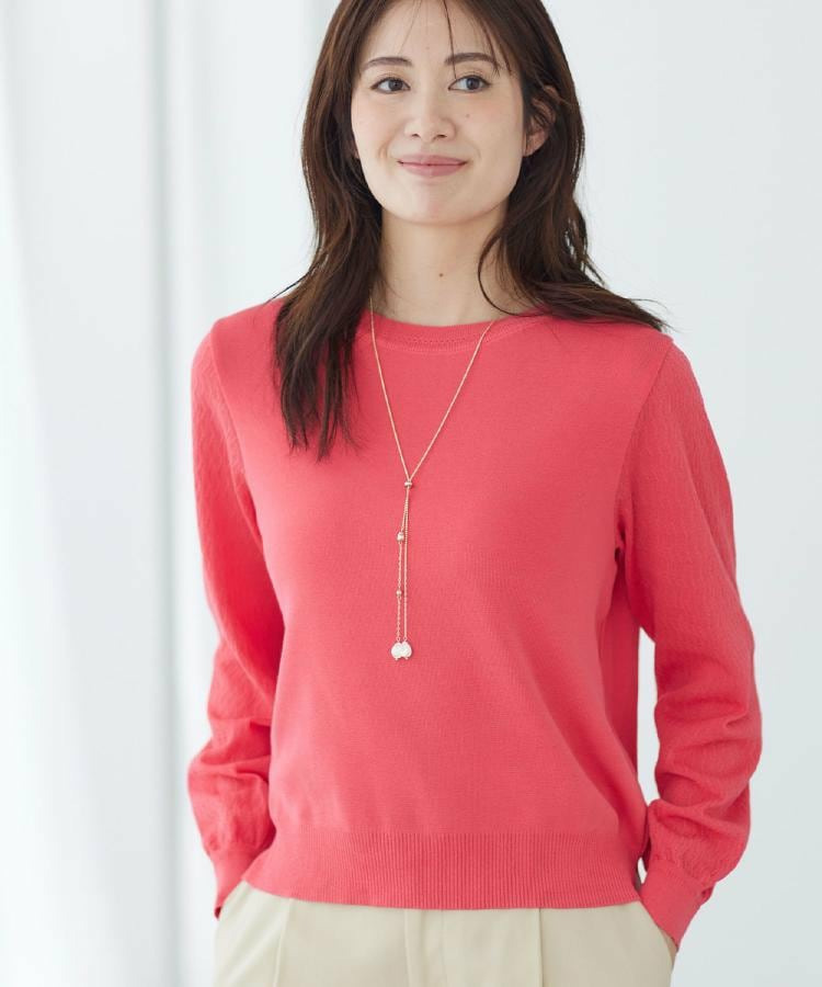 袖に繊細な地柄を施した上品なハイゲージニットプルオーバー。