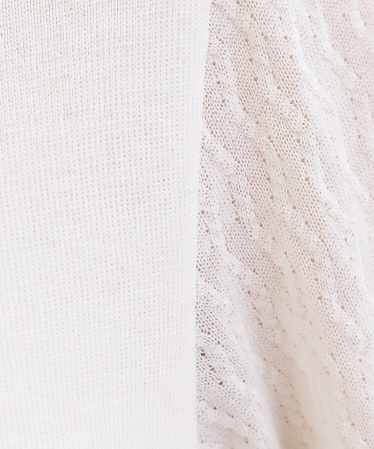 ほのかにパフ感を持たせた袖がさりげなくフェミニンな印象をプラスし、身頃は総針編みで程よい肉感を持たせシルエットを美しく引き立てます。