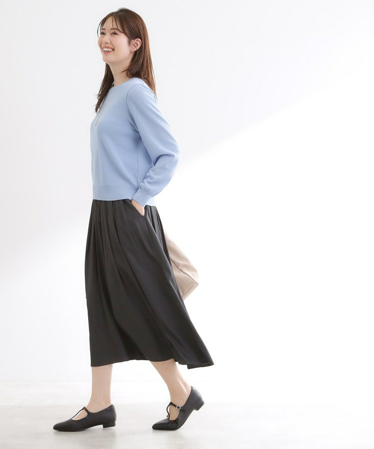 裾はリブ仕様にスリットを入れることで締まりすぎないバランスにし、スカートと好相性でオフィスからお出かけまで幅広いスタイリングに活躍する一枚です。