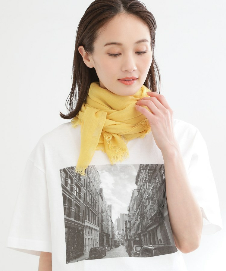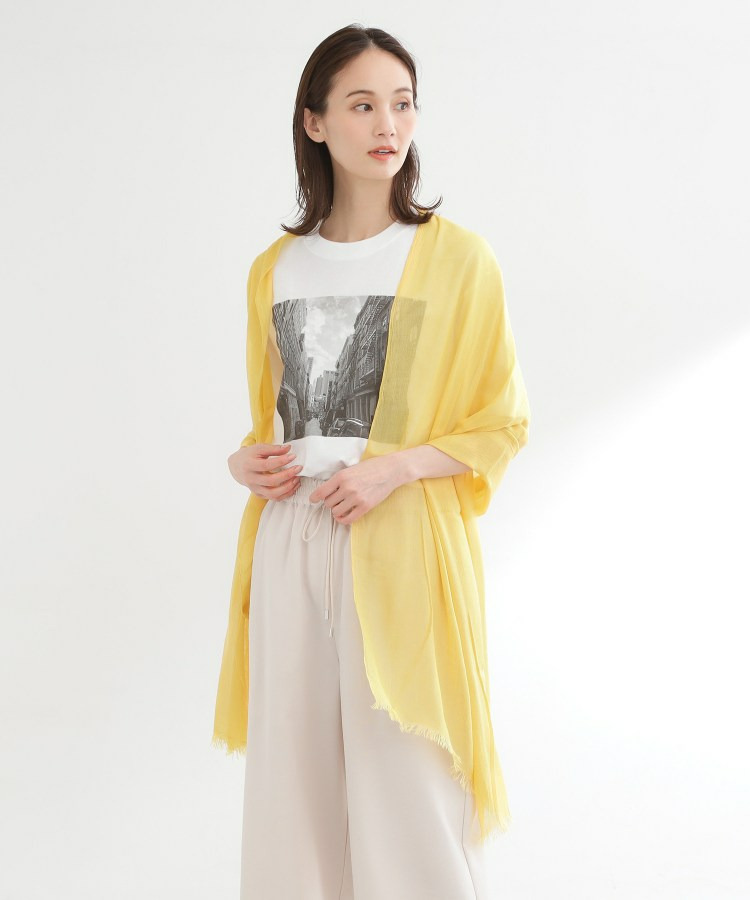 肩から羽織るのはもちろん、首にぐるりと巻いてストールとしてもお使いいただけます。