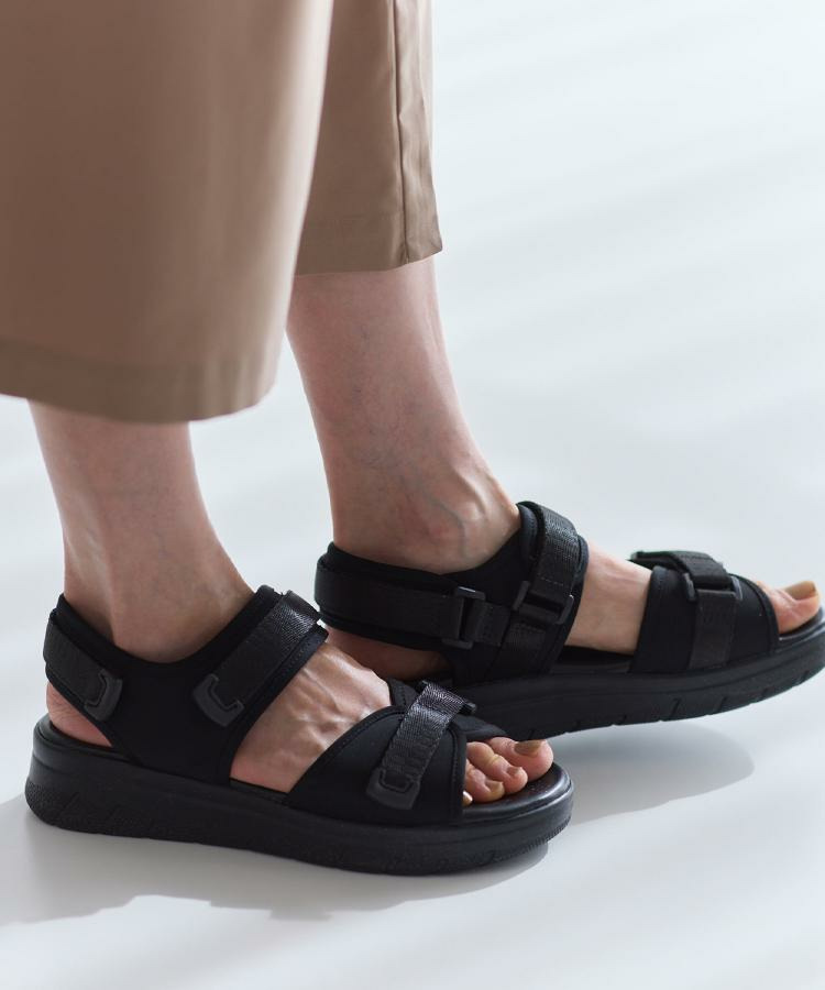 安定した履き心地で歩きやすい、調節可能なベルト式スポーツサンダル。