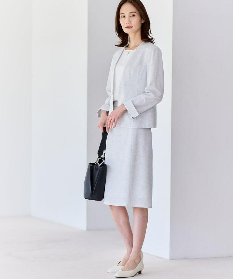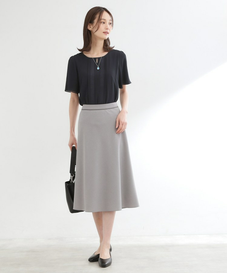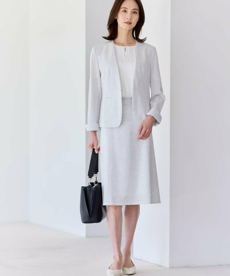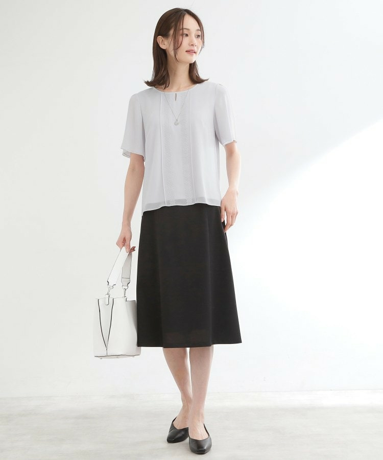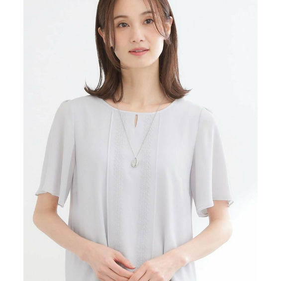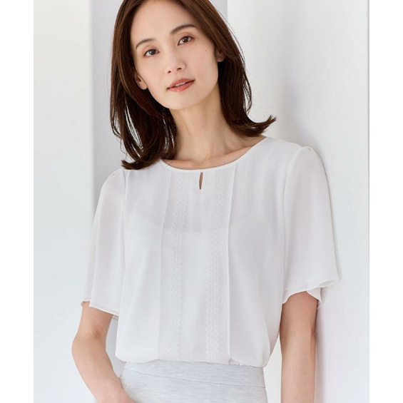 身頃はジャージとシフォンの2重仕立てで軽やかさとほどよいきちんと感を両立し、袖はシフォンを2重に重ねた仕様で透け感を抑えつつ、柔らかな表情をプラスしています。