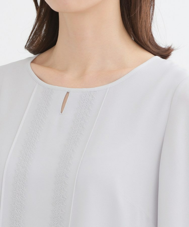 前身頃は刺繍とピンタックのデザインになり、フレアの五分袖になっております。